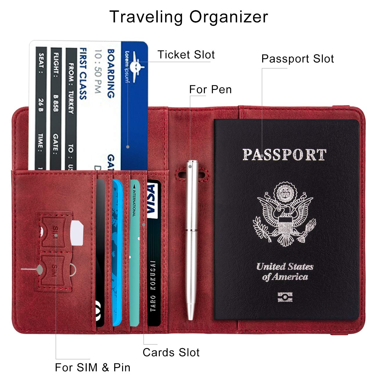 Practical Travel Accessories: This passport cover and card wallet has multiple slots to hold business cards, credit cards, cash, boarding passes sufficiently, two SIM slots for SIM cards, a pen slot for pen. Allows convenient access to information during boarding and transit
