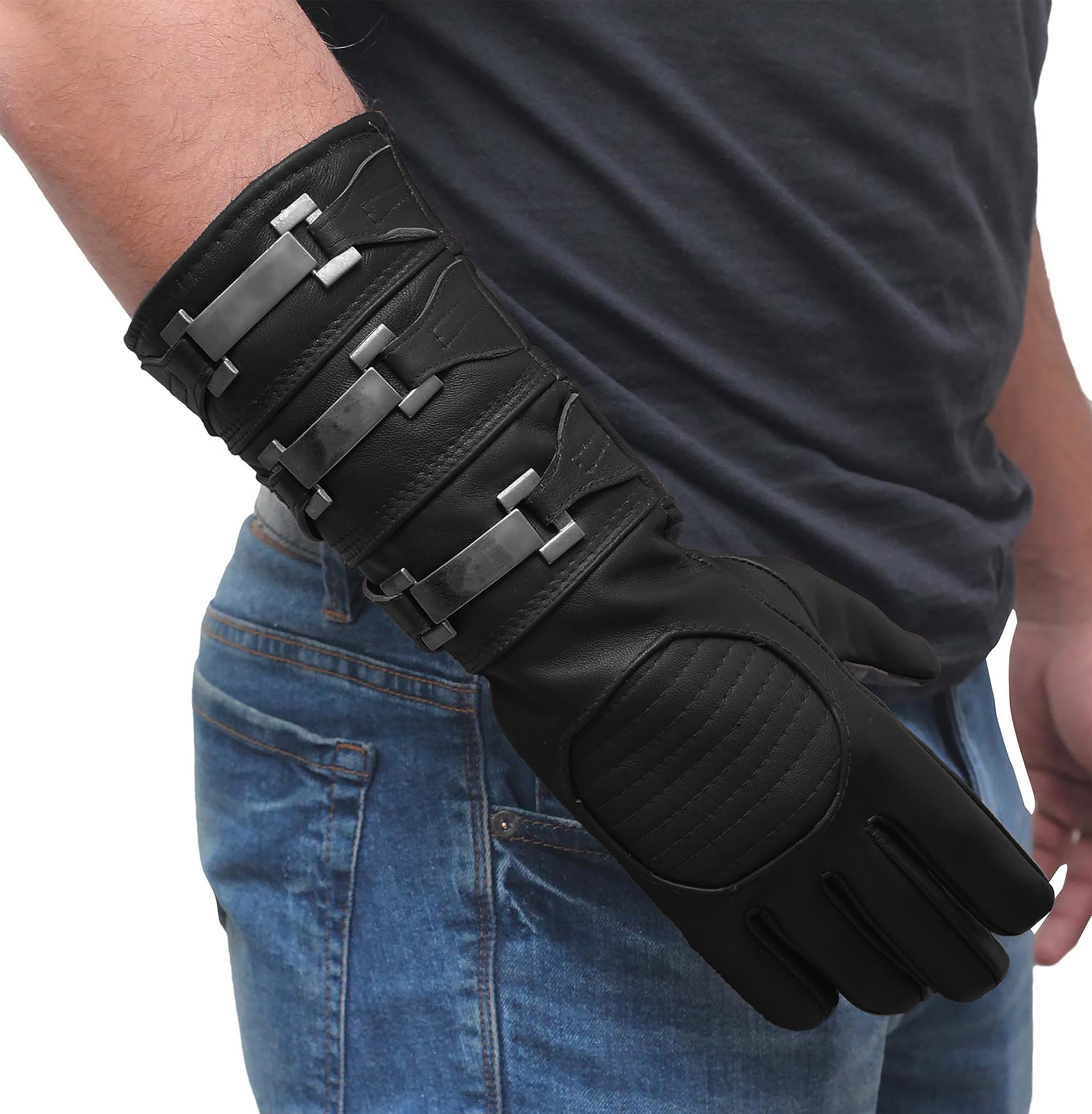 Sheepskin Leather: These Black glove are crafted from Premium men sheepskin leather, offering a soft and luxurious feel, perfect for a high-quality cosplay experience.