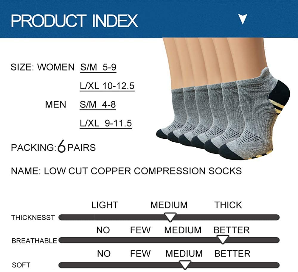 NEW DESIGNED COPPER LOW CUT COMPRESSION SOCKS - Feel the immediate Comfort and remarkable design of your new Low Cut Running Compression Socks. They’re easier and more convenient than knee high compression socks without compromising quality or Comfort. Premium Quality stitching for Running, Working or Cycling, Easy to get on even though they are compression socks!