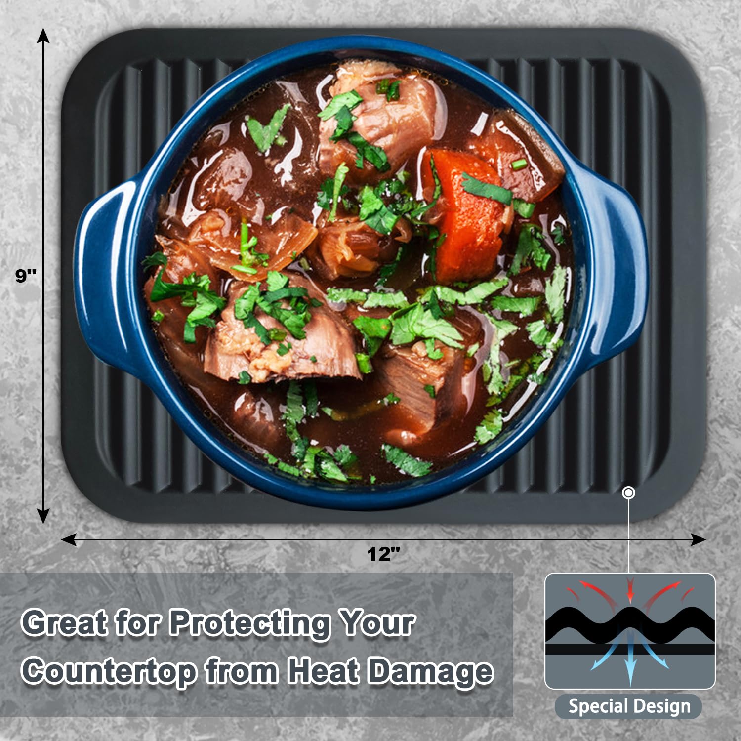 ULTRA HEAT RESISTANT: Walfos hot pads for kitchen have a temperature range of -104℉ to 446℉. Unlike other flat designs, this trivet's raised-ridges can separate hot pots and pans from the countertops well, protecting your kitchen quartz from scalding. Thick Trivet Size: 16'' x 12'' x 0.22''; 12'' x 9" x 0.22''