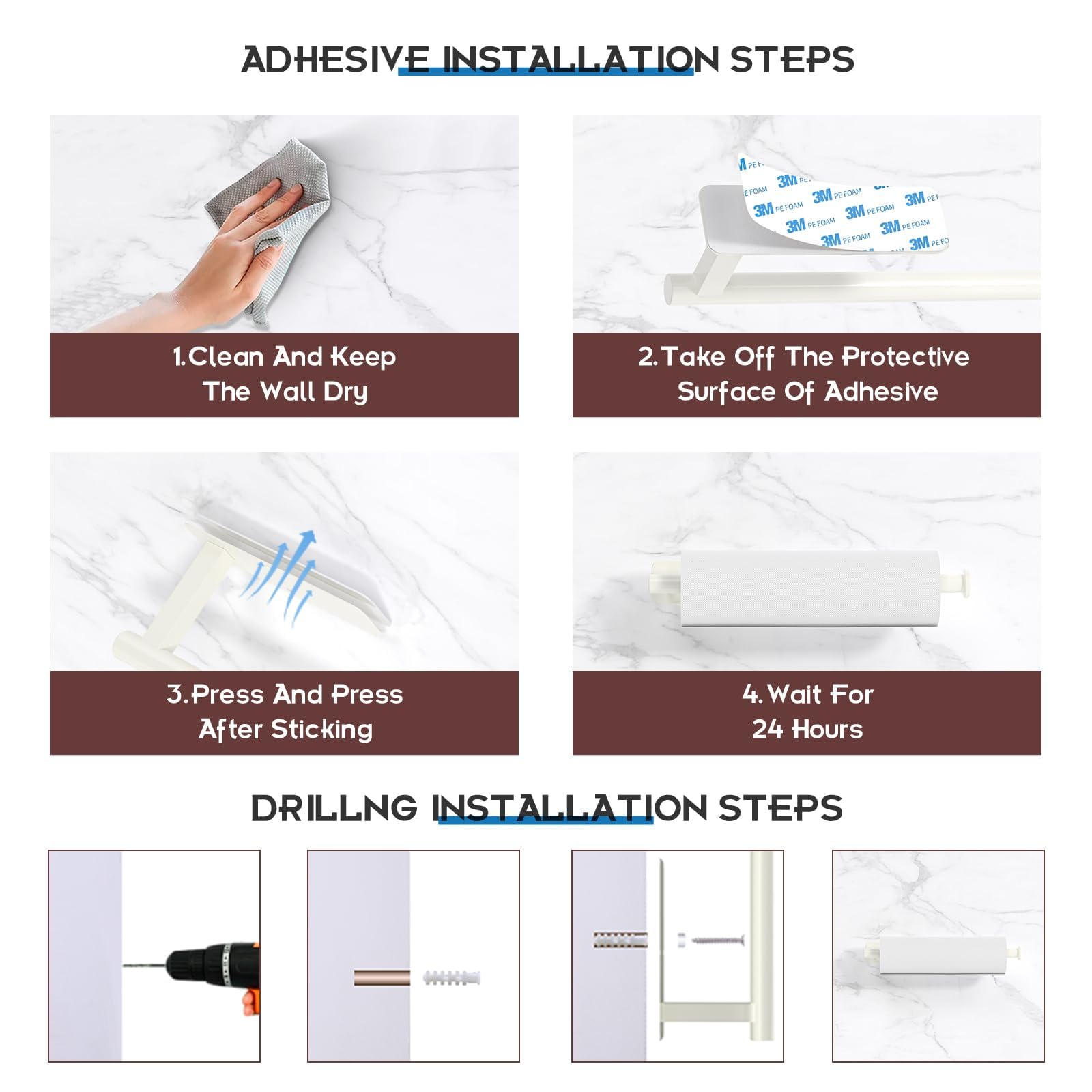【APPLICABLE RANGE】: Wall paper towel holder white can place kitchen paper, plastic wrap, utensils, etc. for your kitchen organization. This waterproof white paper towel holder under cabinet can also place toilet paper, towels in the washroom. More usages of this tool waiting for you to discover