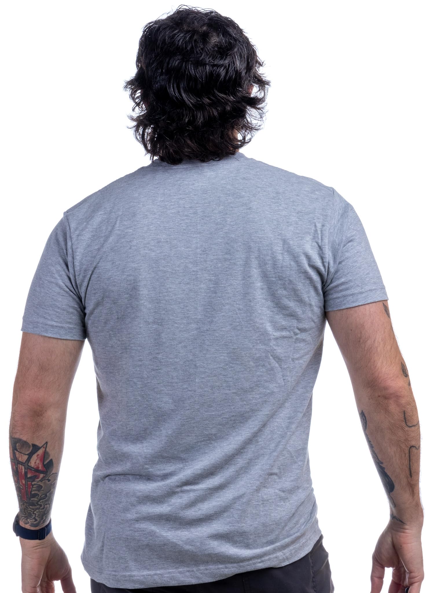 UNISEX MODERN FIT SIZING | this shirt is slightly tapered to be a little less boxy than the old style of mass-market t-shirt. Nothing drastic, and most people wear the same size in our shirts as they do in all of their others, but you might go one size larger if you're on the fence. It is pre-shrunk, but like any high-cotton product, will still shrink slightly in the wash. Our model photos are the real thing - the actual shirt on our salesguy, Rich. He's 6' 2", 200 lbs and wearing a large