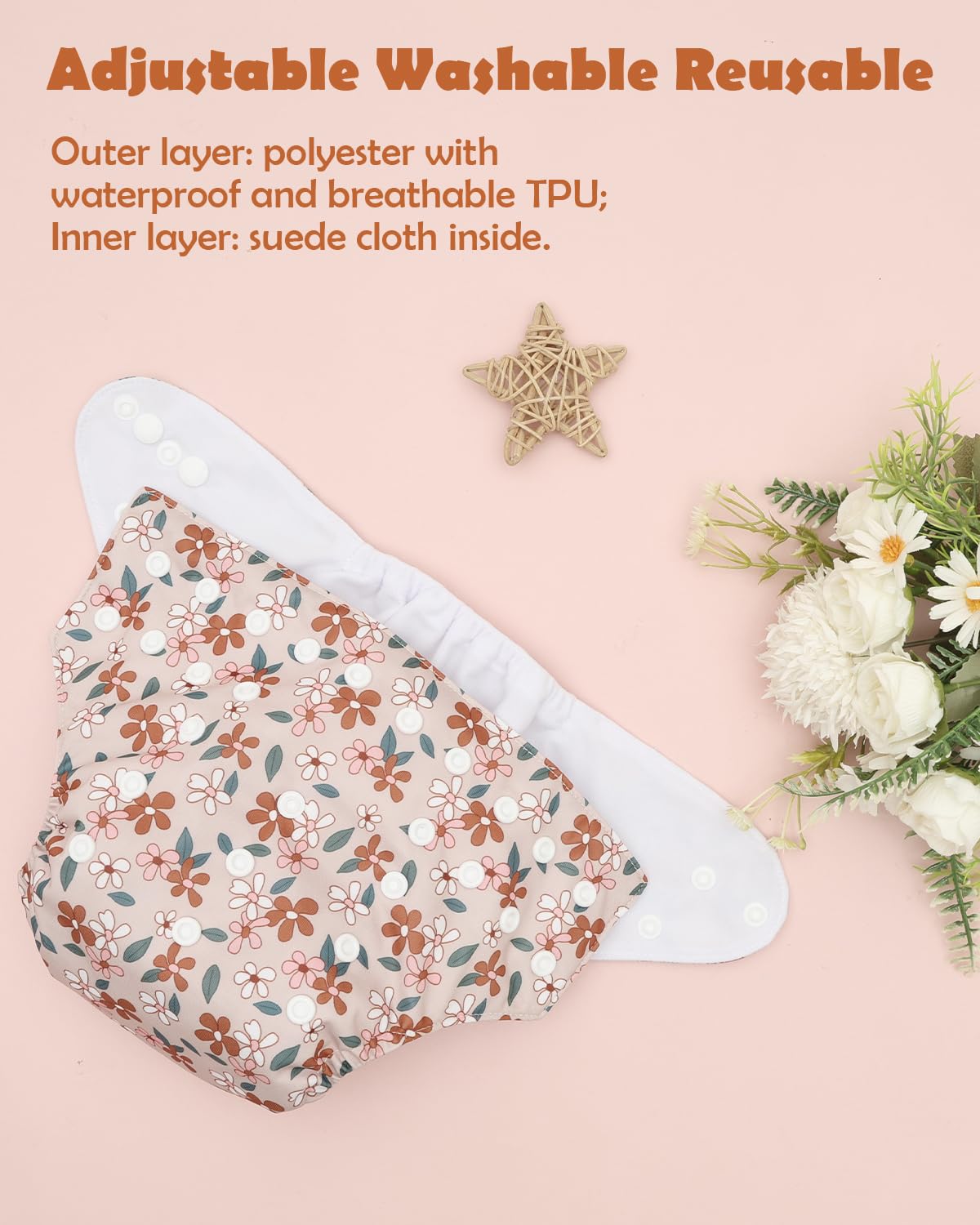 High Quality, Adjustable, Reusable & Waterproof : Waterproof & breathable TPU outer + moisture-wicking suede cloth inner. Includes two 3-layer inserts (13.7”x5.5”) per diaper. Perfect for active parents.
