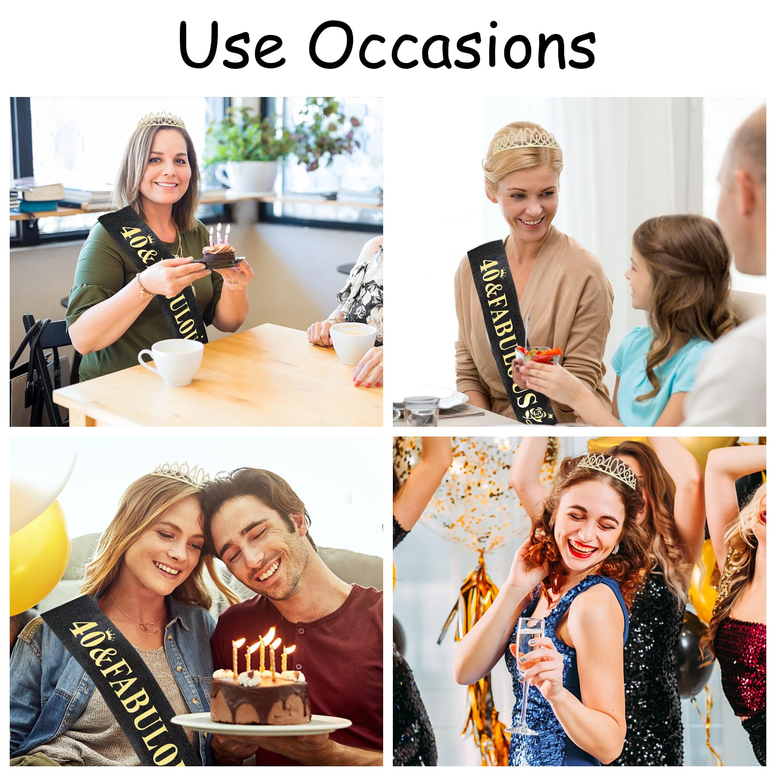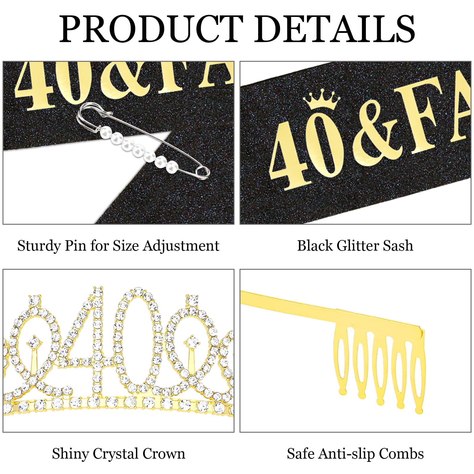 Package Included: The package contains "40 & Fabulous" birthday sash and 40th crown and a pearl pin. You will be like a queen in your birthday celebration