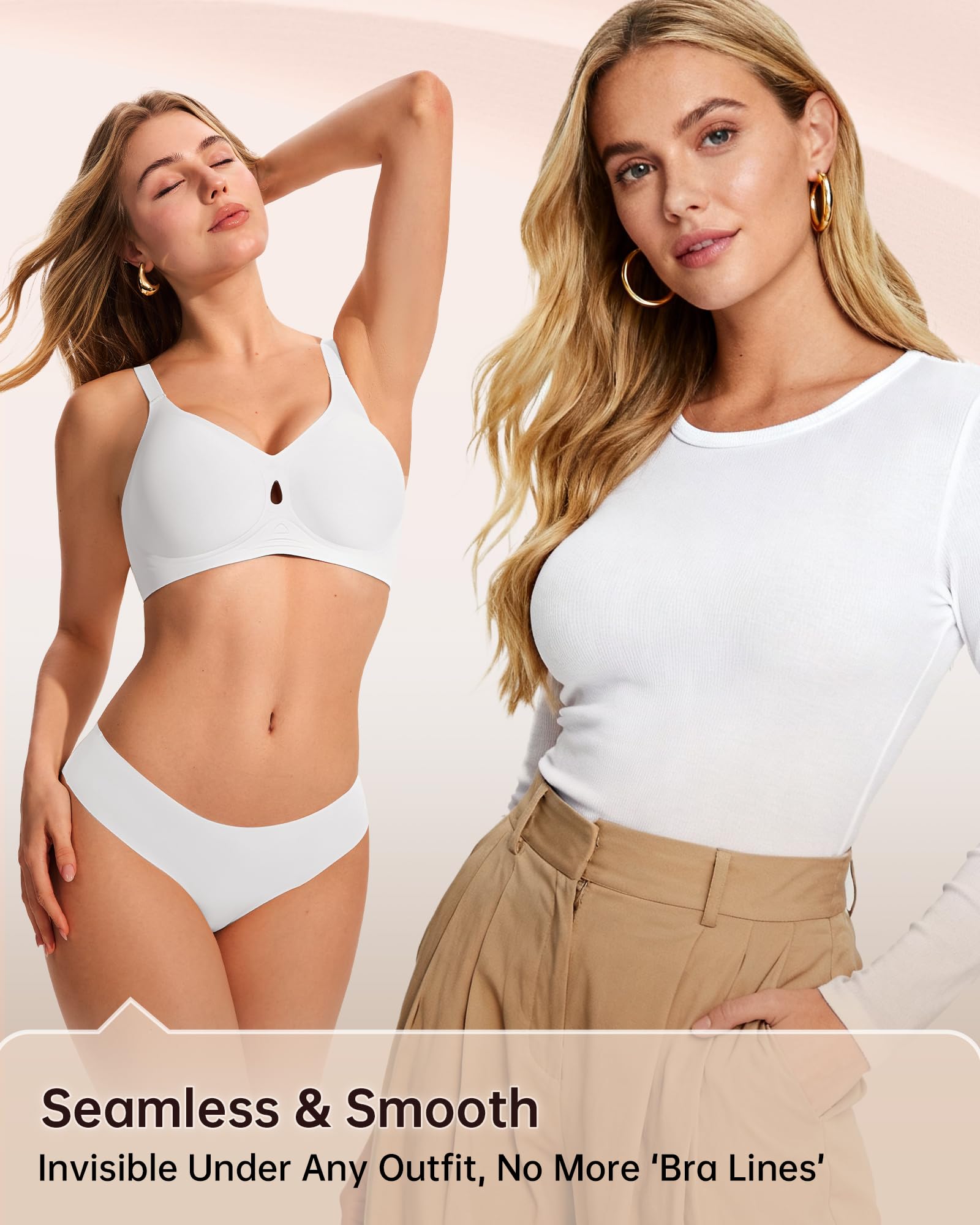 【Breathable Hollow Water Drop Design】Delicate water drop cutouts combine breathability and elegance in LetsJoli wireless bras for women, creating a comfortable experience while enhancing comfort and fit. The breathable hollow cutouts enhance airflow, keeping you cool and dry during extended wear and improving overall comfort