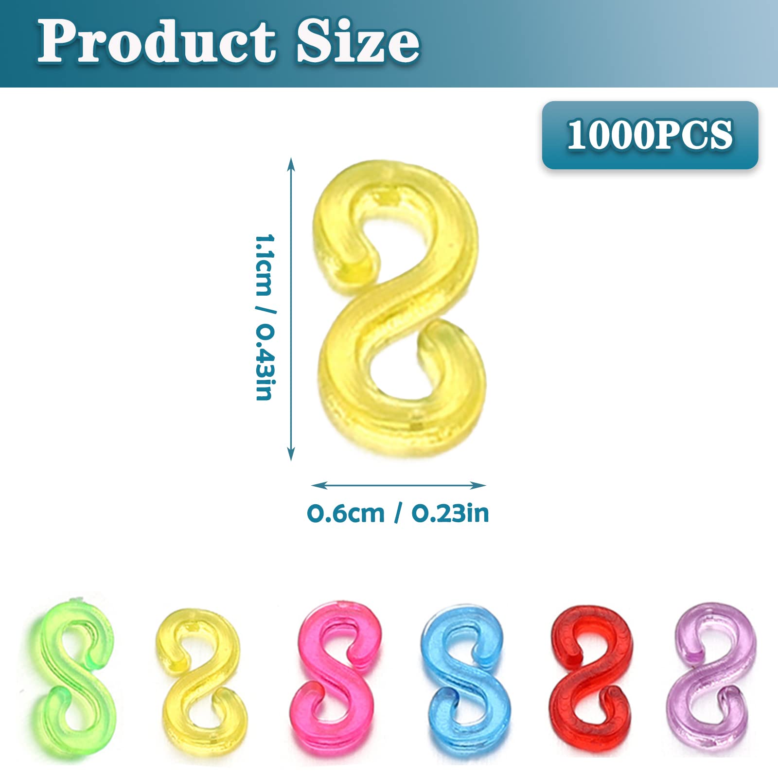 S Clips Rubber Band Clips 1000 Pieces Loom Rubber Band Clips Plastic Band Clips Connectors Refills Bracelet Kit Clip for Loom Bracelets DIY Making Refill Kit