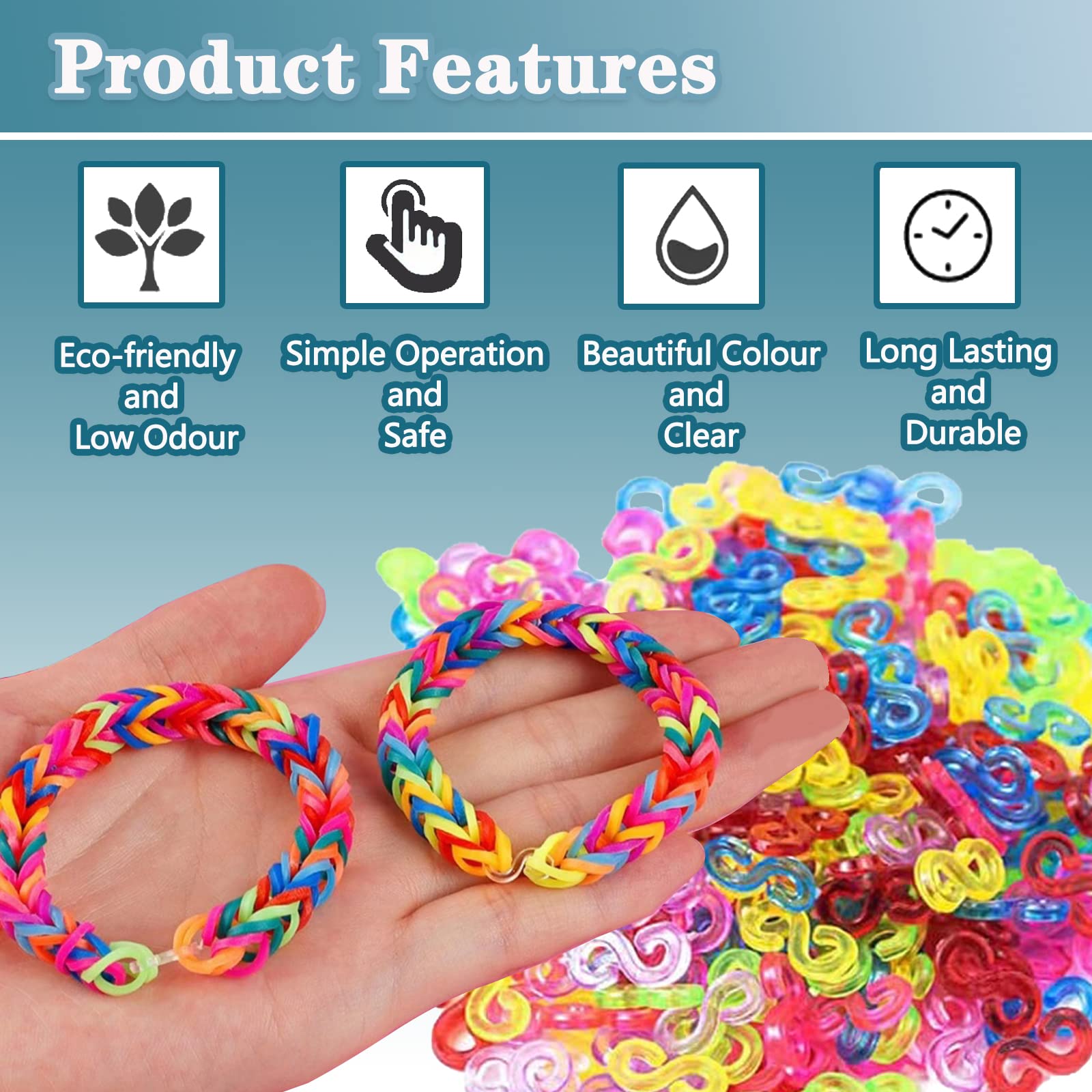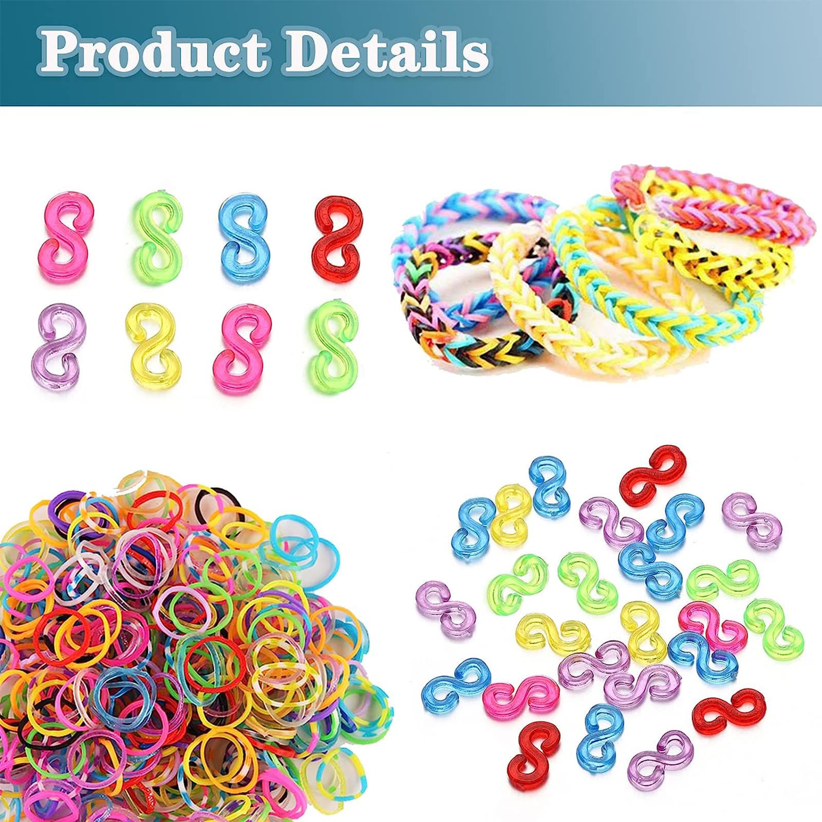 S CLIPS FOR LOOM BANDS Creative and imaginative loom Rubber Band S Clips, you can make bracelets with your family or friends and enjoy the endless fun of creating rubber band jewelry. Bring more fun to your daily life, you will love it. Use it to do different things you can imagine, there are endless possibilities for gadgets and decorative weaving crafts. GREAT FOR DIY HANDCRAFT These S Clips are great for making many wearable DIY crafts such as necklaces, bracelets, rings, charms and other ornaments. Make super fun gadgets to enrich your leisure time and give you a sense of accomplishment. QUALITY MATERIALS Loom Rubber Band Bracelet S Clip is made of plastic material, durable, not easy to break, washable and wear-resistant, can accompany you for a long time. Easy to operate and can be used with the loom rubber band. ABUNDANT QUANTITY The package contains 1000 pieces loom S clips. Sufficient quantity to meet your various needs to make bracelets and create different DIY crafts. GIFT FOR KIDS S clips can help develop children's interest in learning, manipulative skills, imagination and creativity, promoting their hands-on or other valuable skills. It is also a popular parent-child activity that creates quality family time. Perfect for spending happy hours and a great gift for Christmas, birthdays, parties or holidays. Attention: The recommended Age Grade of the S Clips is over 4 years old.
