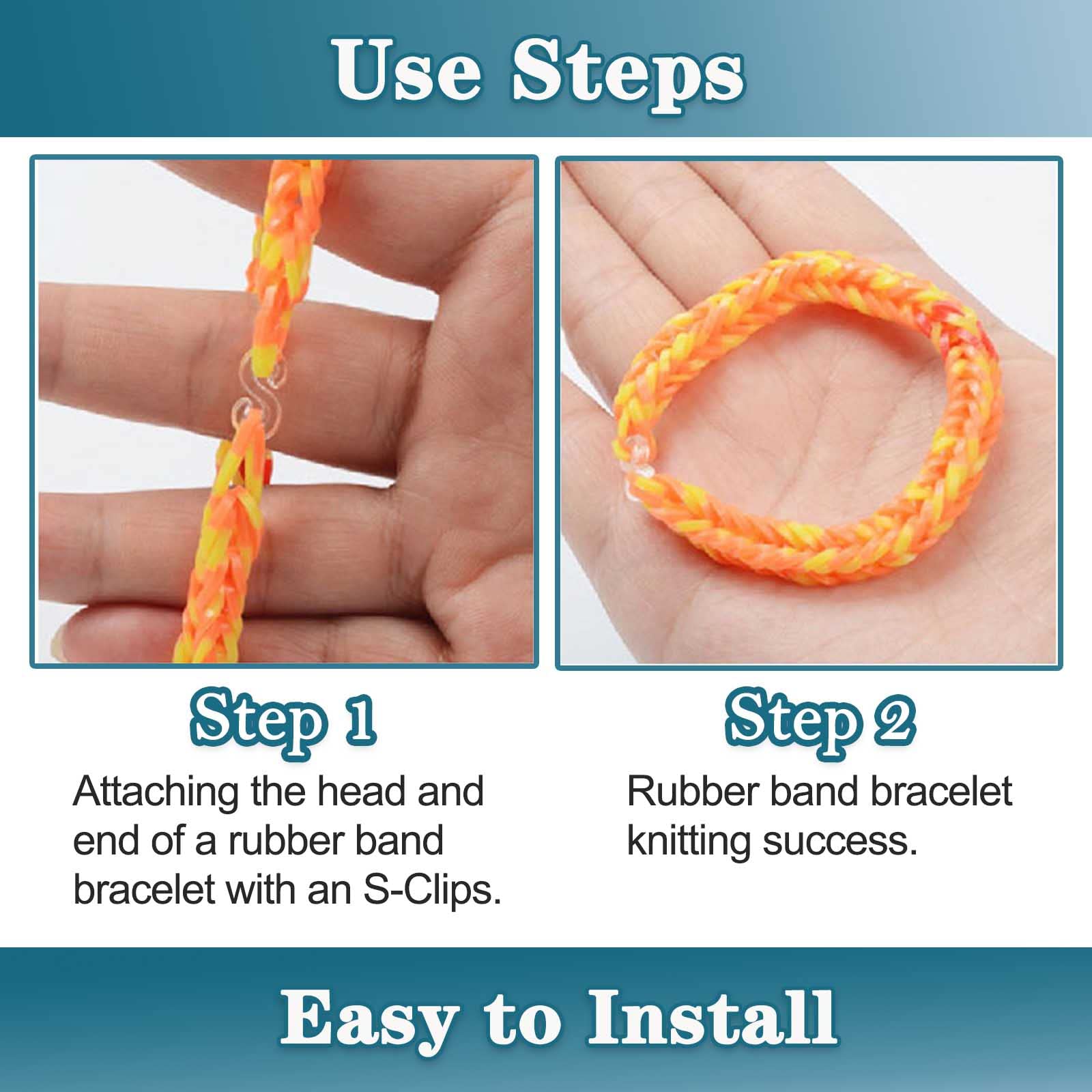 QUALITY MATERIALS ---- Loom Rubber Band Bracelet S Clip is made of plastic material, durable, not easy to break, washable and wear-resistant, can accompany you for a long time. Easy to operate and can be used with the loom rubber band.