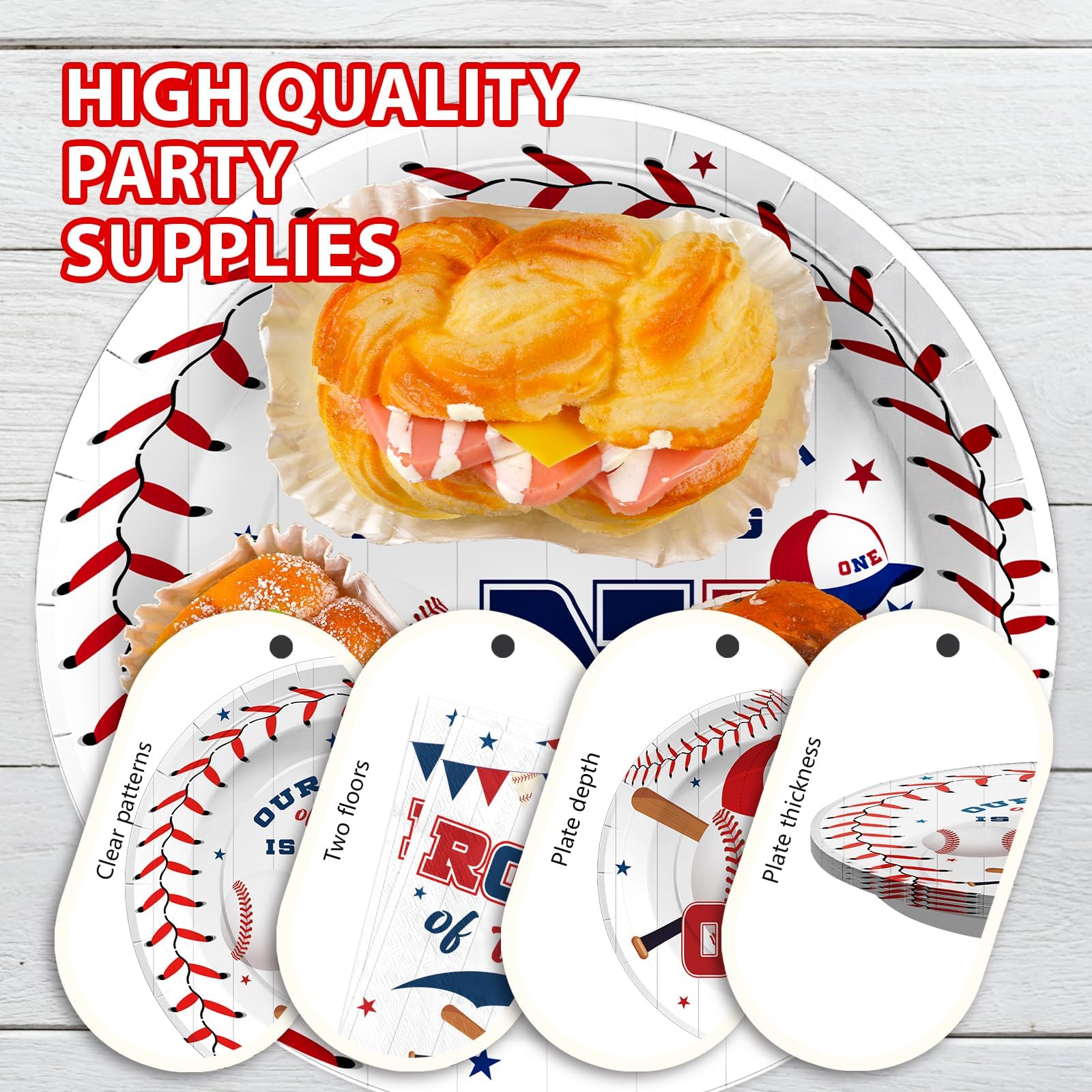 Save Time: These baseball 1st birthday party supplies are an ideal replacement for traditional party plates. You only need to dispose of the baseball birthday plates after use, no need to wash the dishes and other tedious tasks.When the party is over, you can spend more time with family or friends and less time cleaning up