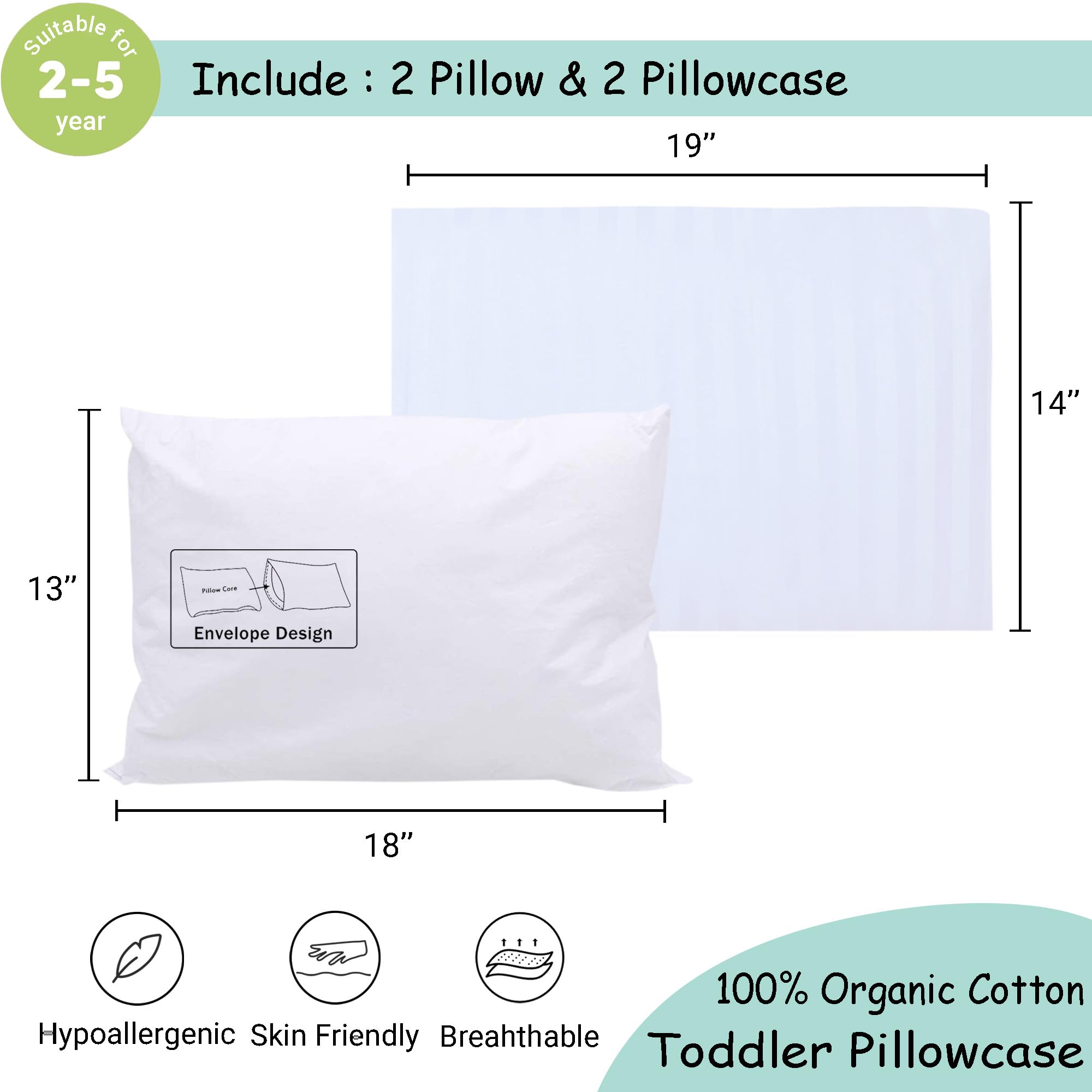 PACKAGE INCLUDE: 2 toddler pillow 13x18 and 2 toddler pillowcase 14x19, After opening the package, please wash and dry the pillow to regain its fluffiness