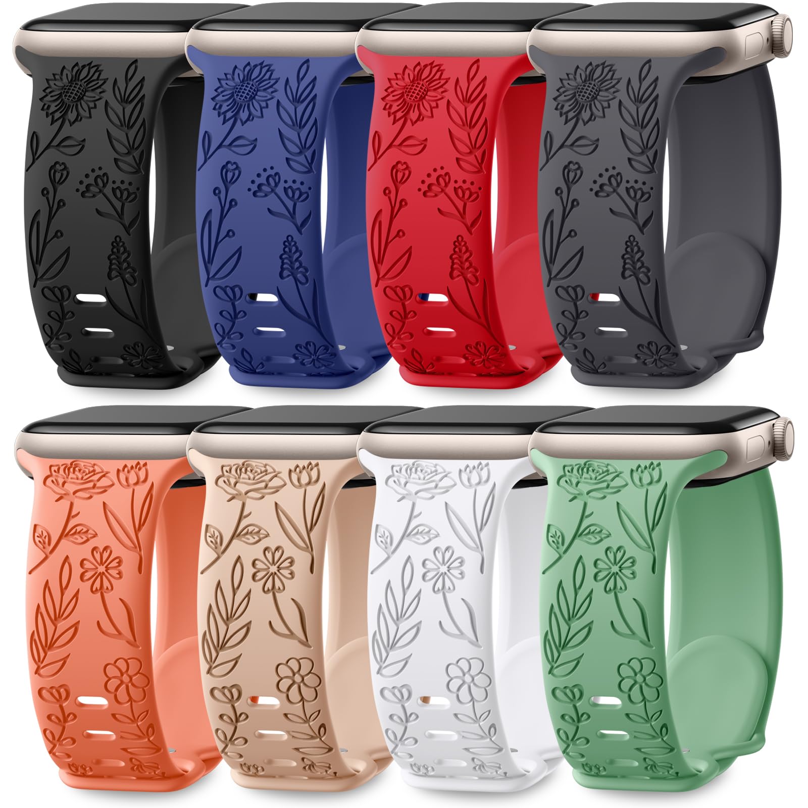 ✅ Floral Elegance for Your Apple Watch: Elevate your Apple watch style with our 8 pack floral engraved iWatch bands. Featuring intricate rose and cheerful sunflowers, they combine expert craftsmanship with trendy colors. Perfect for formal elegance and a touch of modern flair for casual wear
