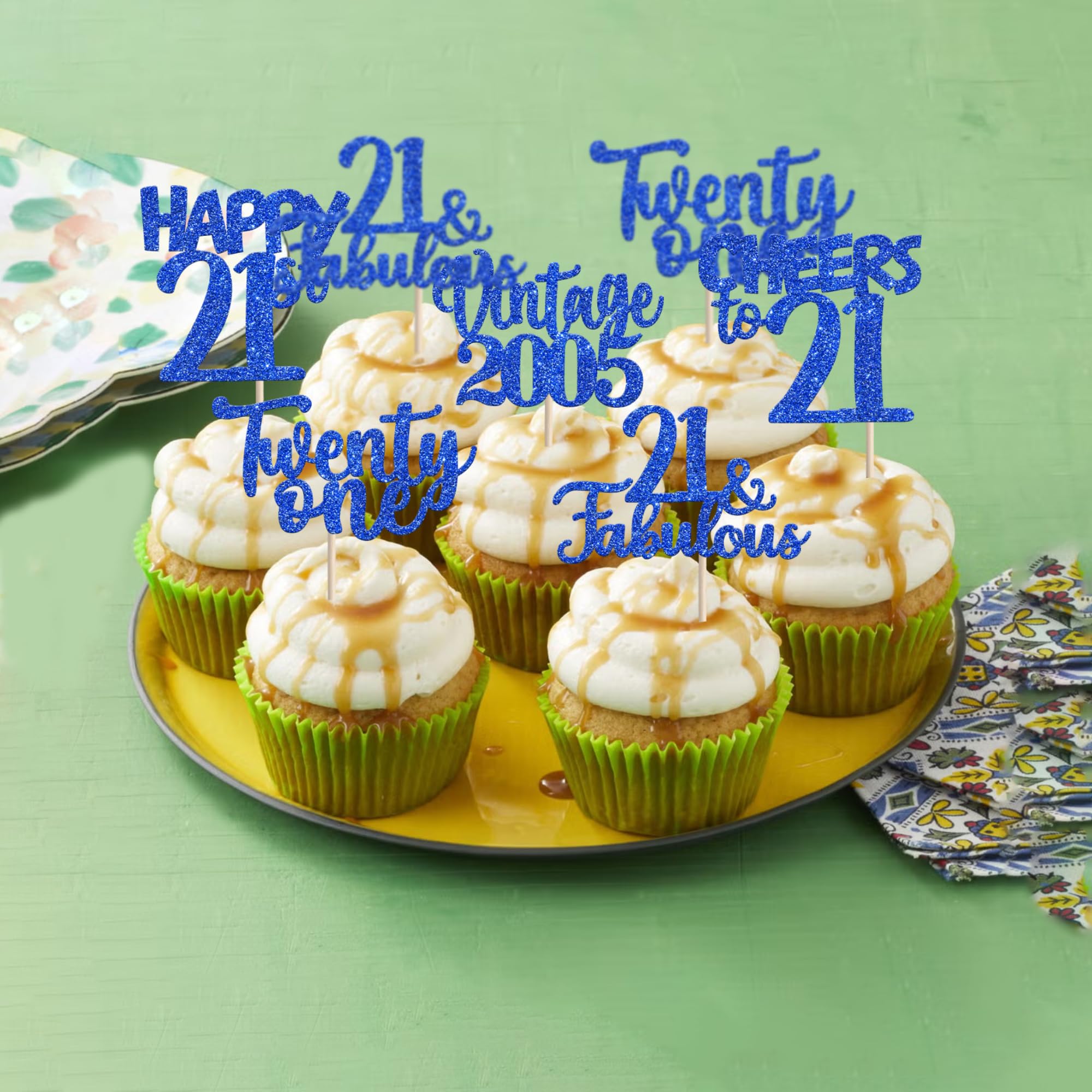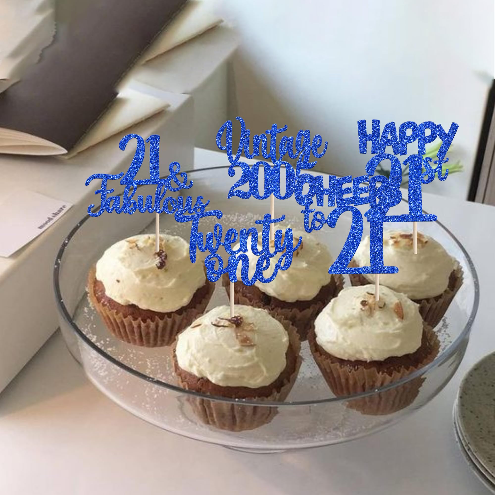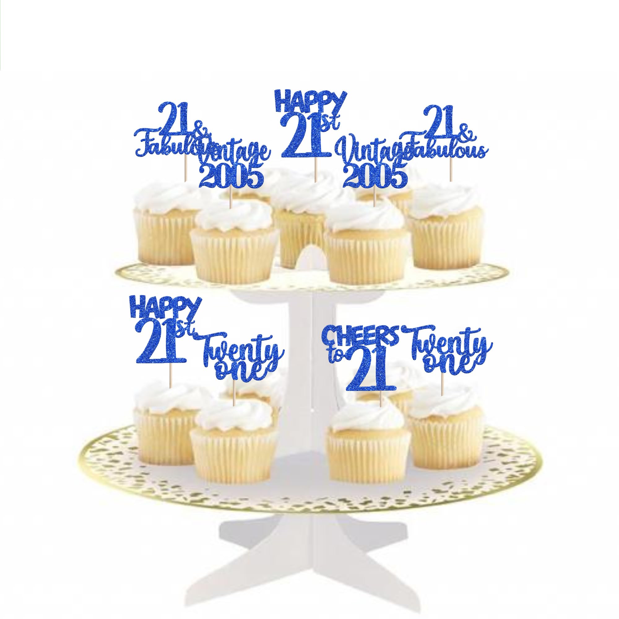 Vintage 2005 Happy 21st Birthday Party Cupcake Toppers Decoration Supplies Perfect for vintage 2005 theme party, 21st birthday theme party, 21st wedding anniversary theme party,cheers to 21 years theme party cupcake decorations supplies. Pack of 30 pcs,6 pcs of each design The size is 2.8*4.1/ 2.0*4.3/ 2.5*4.5/ 2.6*4.6/ 2.2*4.6 inch ( with stick ) Made of high qulity paper card stock,thick and thick and sturdy. These vintage 2005 cupcake toppers are single glitter, the back is white, and they are intended for decoration only, please do not put them in oven or microwave. If the item you received has any defects, please contact us immediately.we will deal with it within 24 hours.