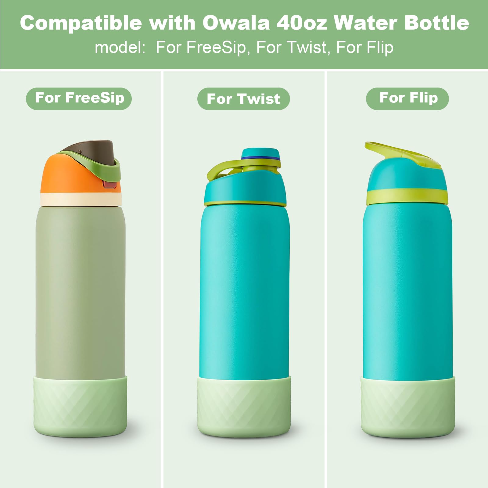Compatible: Silicone water bottle boot sleeve Compatible with Owala 40oz FreeSip/Twist/Flip stainless steel water bottles.
