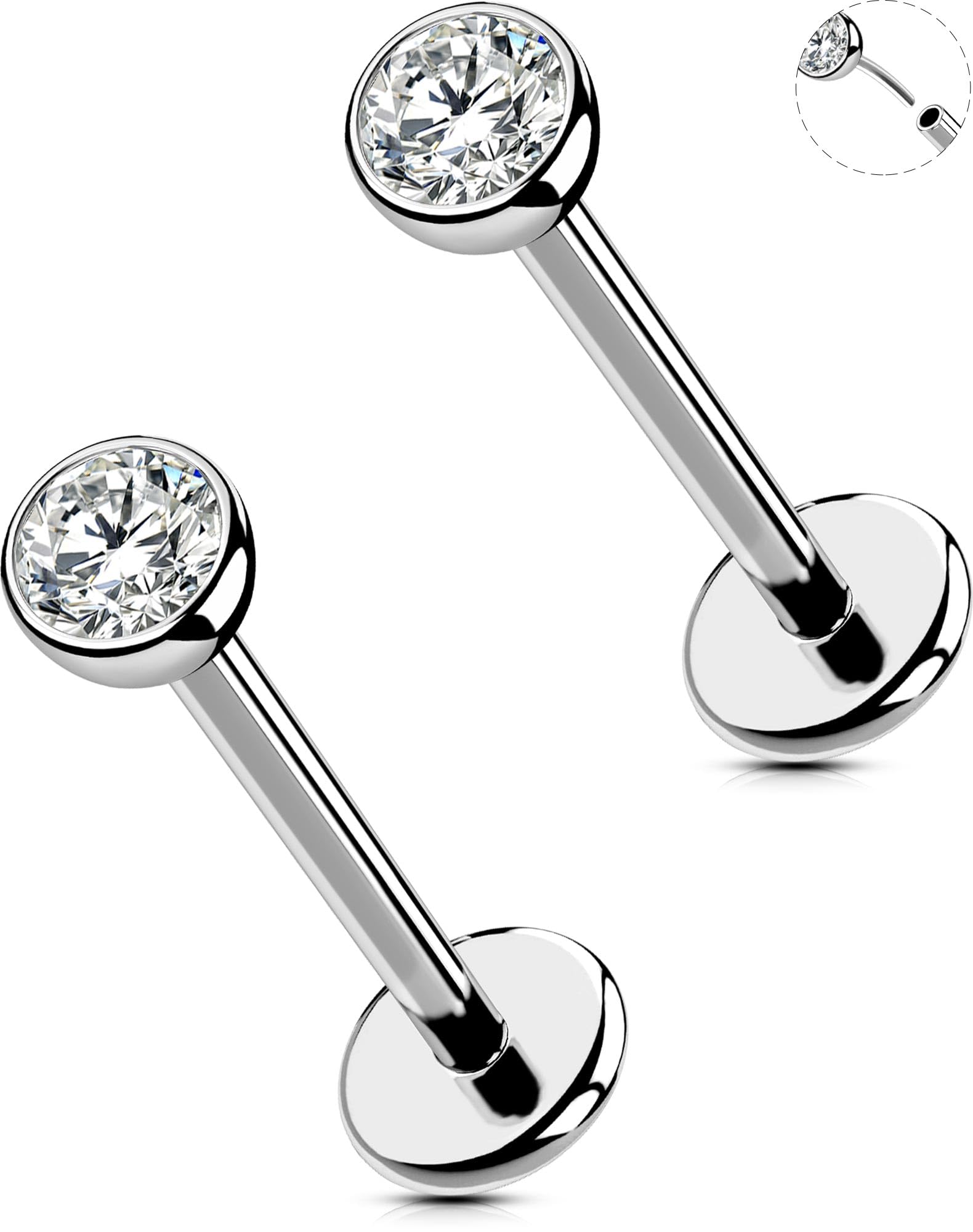 【Threadless Push-In & Flat Back Design】:The threadless push-in design ensures easy, tool-free insertion, while the flat back disc minimizes irritation and provides a smooth, comfortable fit against the skin.