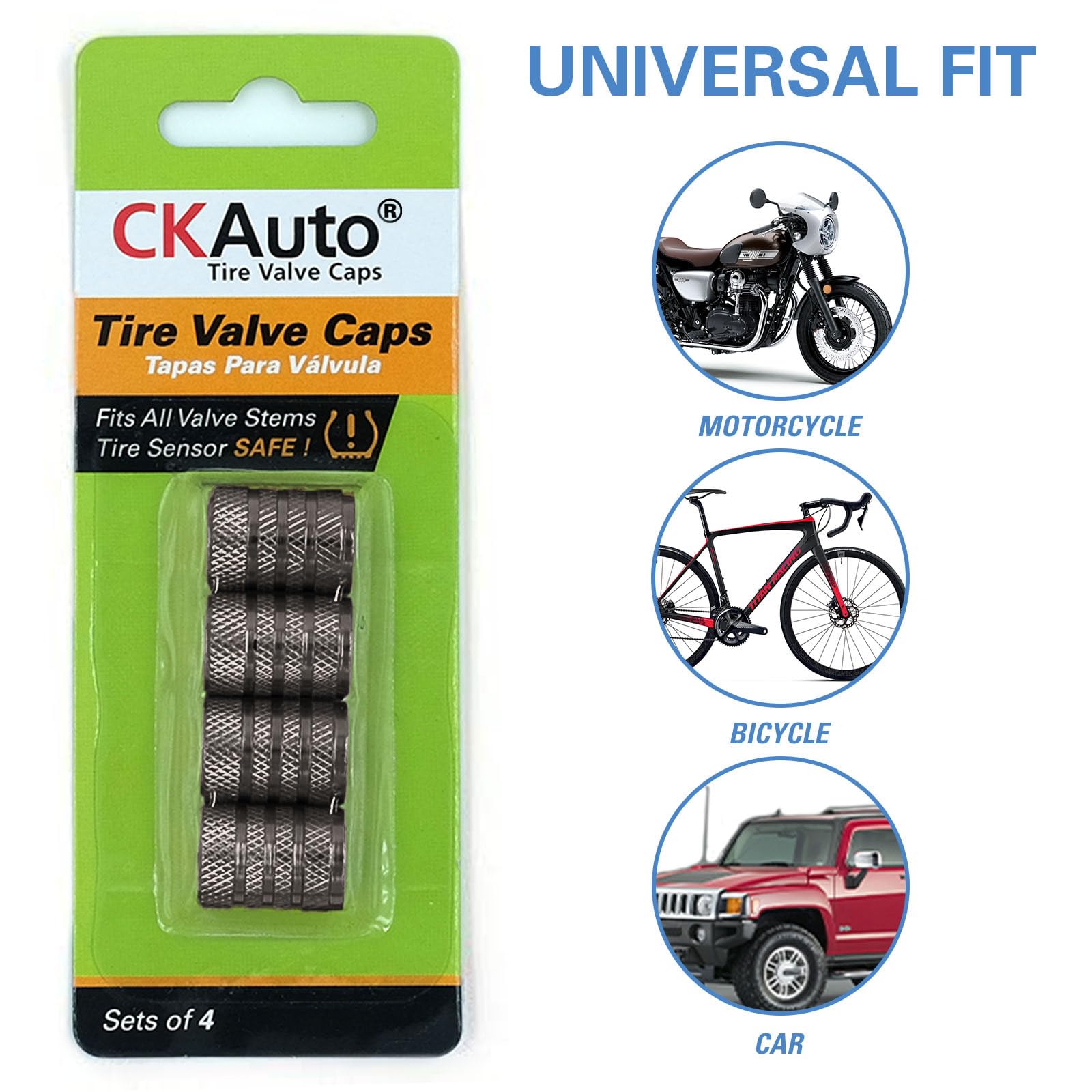 Why Choose CKAuto – CKAuto Valve Stem Caps address the challenge that some materials that may be desirable for an exterior of the valve cap can react with the materials commonly used for valve threads, and materials that do not react with the valve thread material may be undesirable for the exterior of the cap for aesthetics or performance reasons.
