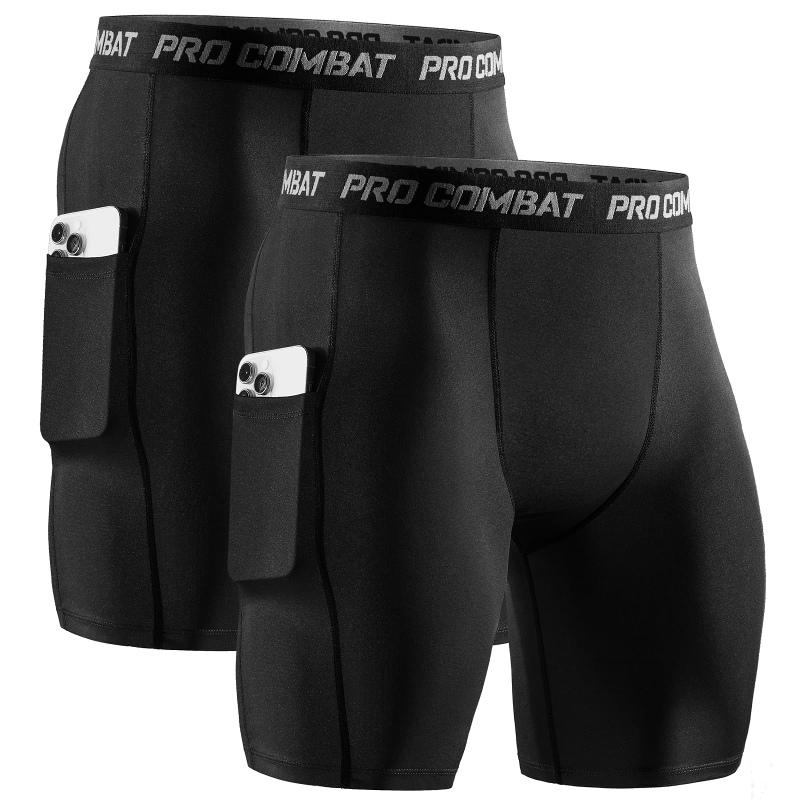 【Ripstop Elastic Waistband】Compression shorts men with pocket are designed with a wide waistband for a better fit around the waist, bringing a comfortable wearing experience as well as non-slip and non-deformation. The tear-resistant design of the waistband is durable.