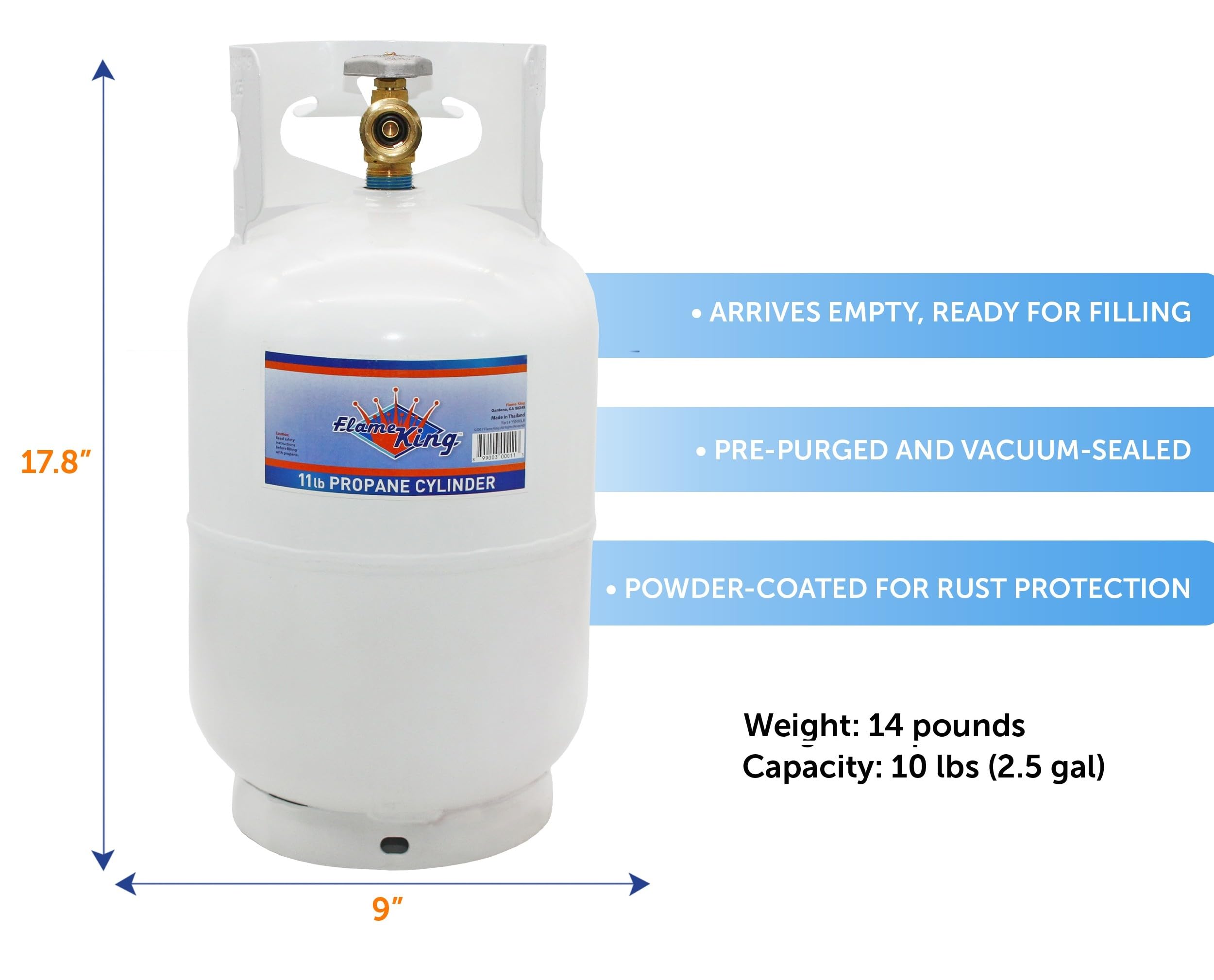 Our propane tank is commonly referred to as a "10LB propane tank" or a "11LB propane tank" in the industry, but its accurate capacity is 10.51lbs. We use "10lb" for simplicity, acknowledging the industry's varied terminology