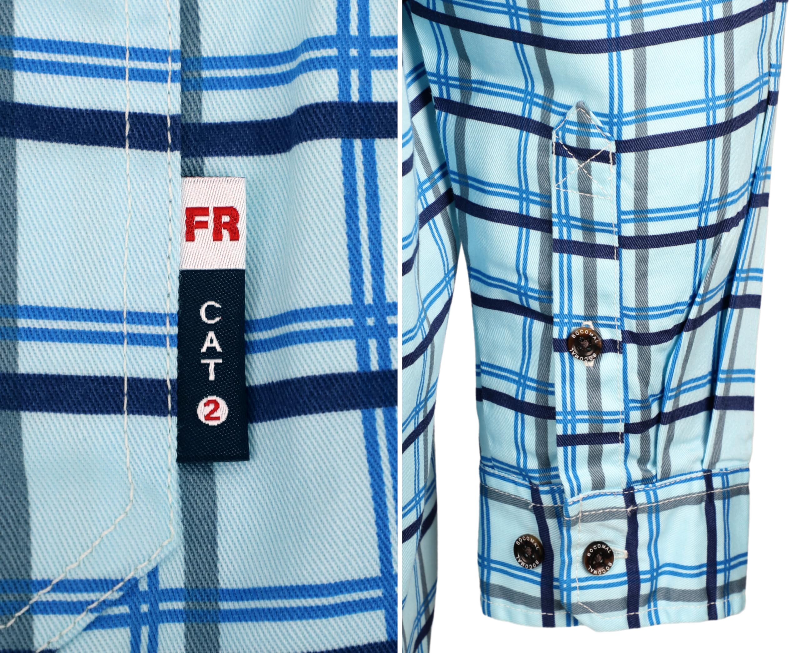 Water and Oil Repellent Finish 6.5oz lightweight cotton twill FR treated,Flame resistant Modacrylic/Cotton Blend mesh.FR buttons,FR aramid sewing threads! clearly FR tag on pocket.Prewashed Preshrunk and Wrinkle-Free.