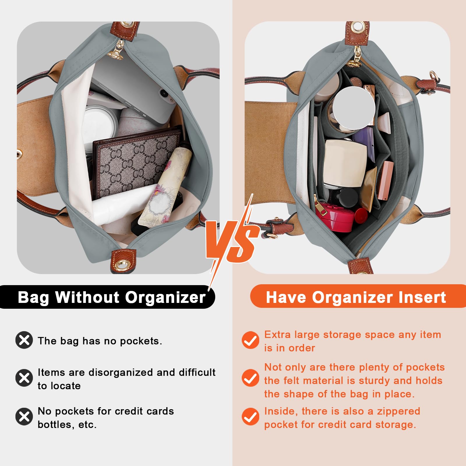 Organizer Same Shape as the Bag: An seperate Zipper Insert Which Helps Keep Your Valuable and Privacy Items Stored Well, And All Your Things Could Be Easy To Find. The Whole Tote Organizer is Also Sturdy Enough to Help Keep Your Bag In Proper Shape,IMPORTANT: This tote organizer is designed for Longchamp bags and does not include the bag, if you have a similar tote, please double check the size to ensure compatibility.