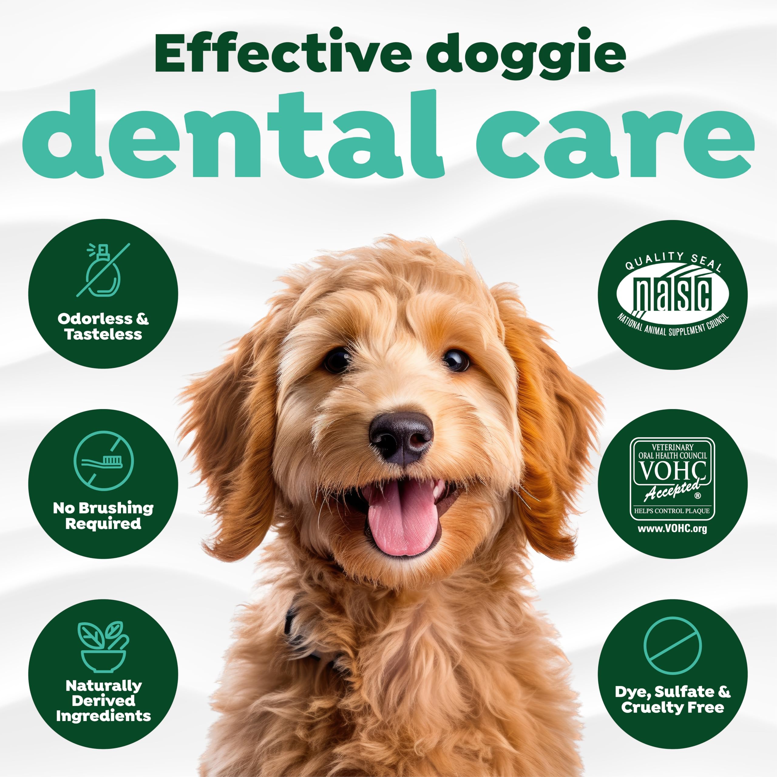 CRAFTED WITH CARE — Our dog dental care water additive is pet–parent & Veterinary Oral Health Council approved. Naturally derived ingredients are free from dye and taste.