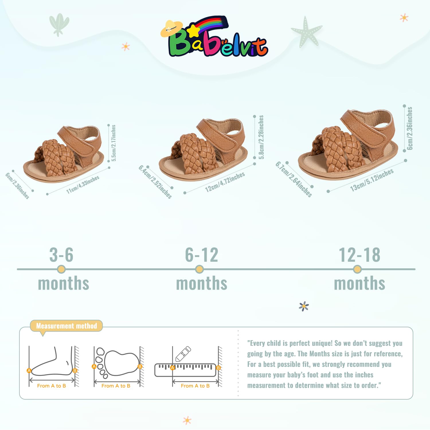 ABOUT SIZE: We love our customer. Please measure the feet, the months age is just for reference, if you measure your baby’s foot then follow our size inches chart they fit great. If your baby has a fatter feet, please buy a size larger. Thanks in advance
