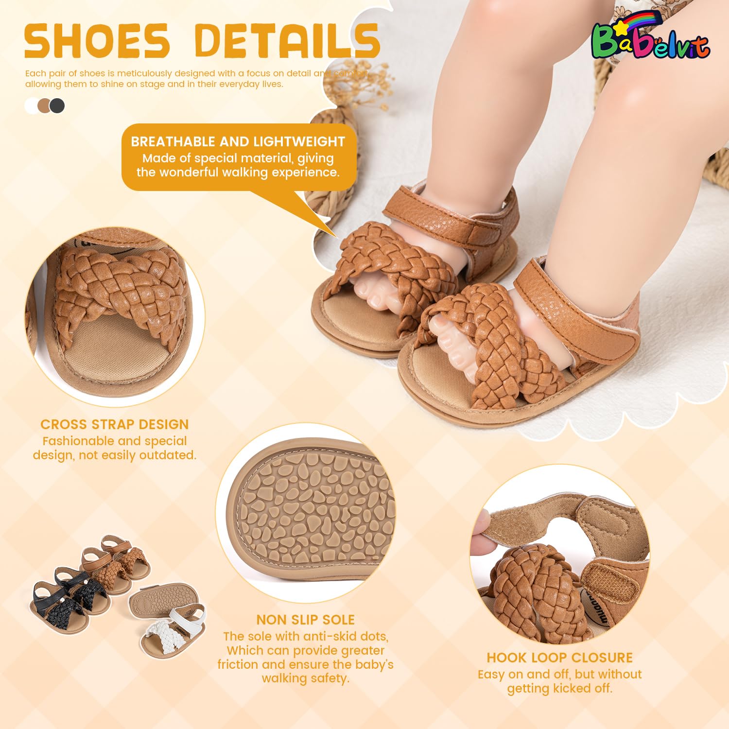 HOOK LOOP: Easy to put on, and easy off with hook loop closures on ankle strap, it can easily adjust the size and fit. Still stay on your baby’s feet