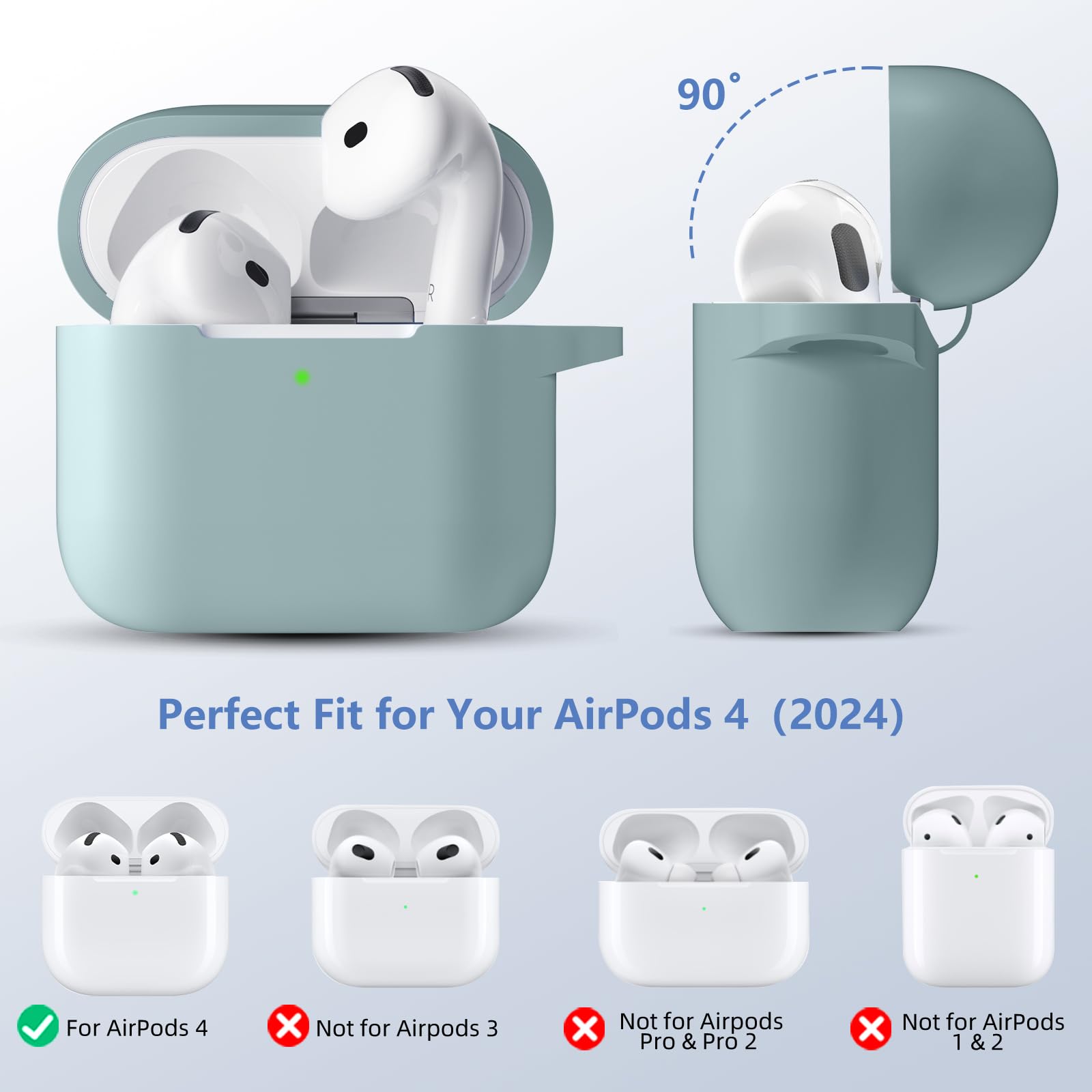 【Snug Fit for AirPods 4th Generation】:Only compatible with Airpods 4th Generation (2024),this silicone case fits snugly and securely, ensuring full protection while maintaining access to all functions and ports.The front LED indicator is visible when you charging.