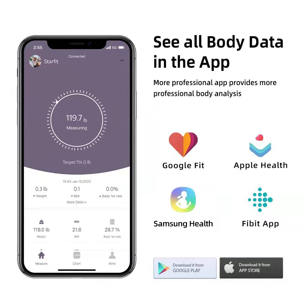 Keep Tracking Your Effort Easily. The Starfit app provides detailed charts and saves historical data to track the changes of your body composition over days, weeks, months or even years. Its Athlete Mode also gives fitness persons a precision analysis of their body.