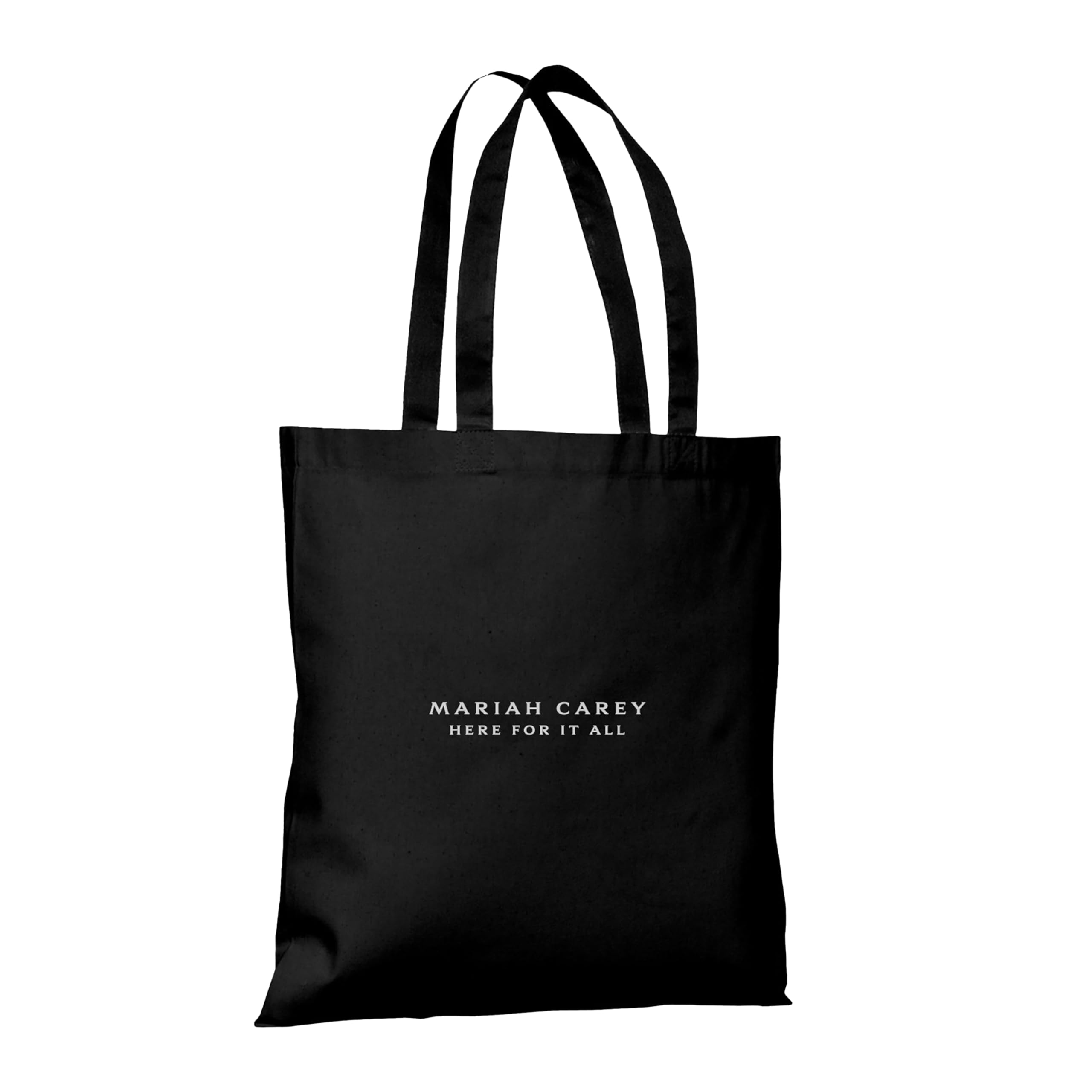 Description Official Mariah Carey Merchandise. This Amazon Exclusive Mariah Carey Here For It All Black Tote Bag features printed logo on one side and jumbo photo real print of Mariah Carey on the other side.