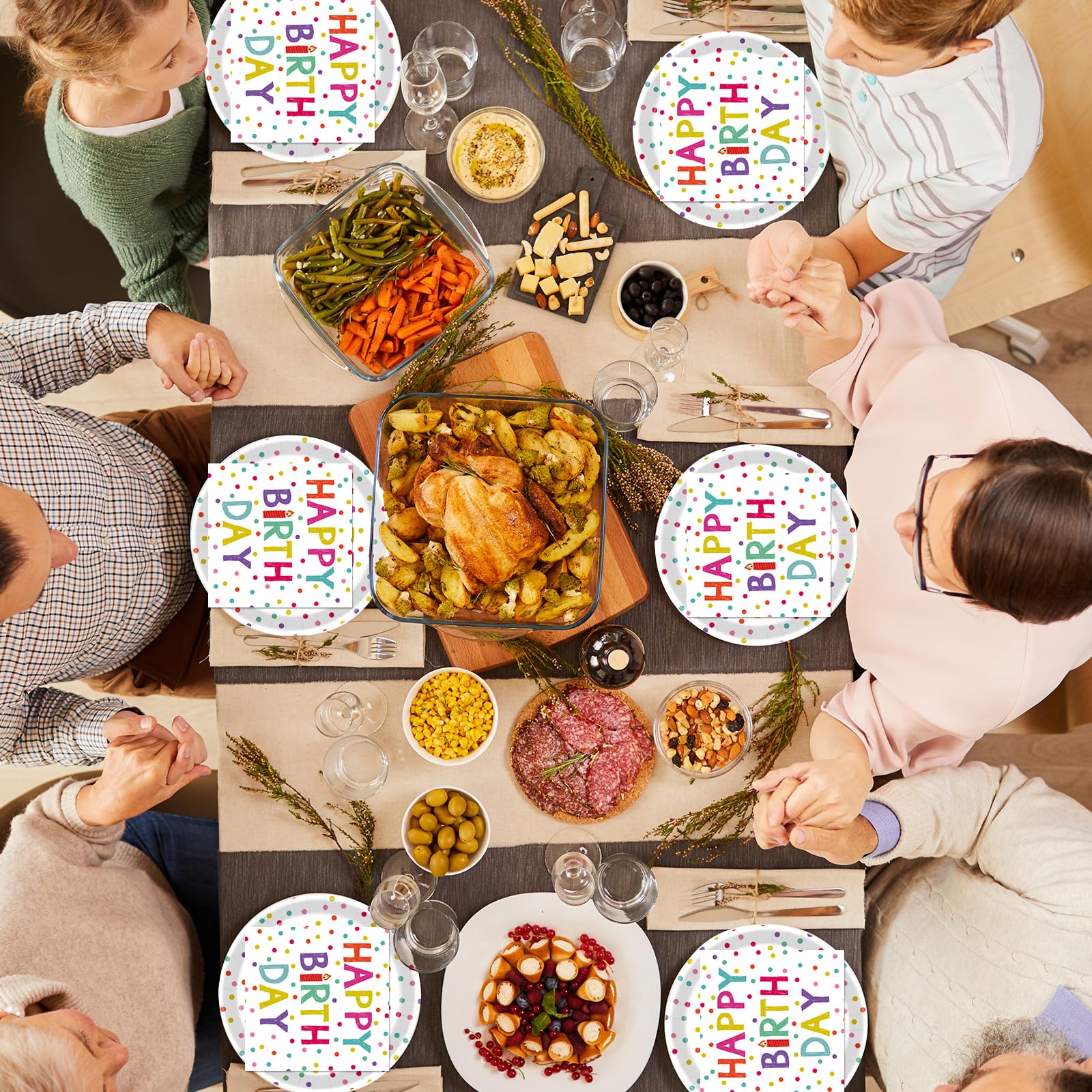 🎂Premium Quality Material: Made of high-quality paper, our Happy Birthday themed plates and napkins are durable, non-toxic, and safe for food. The perfect disposable dinnerware to enjoy your party without the mess.