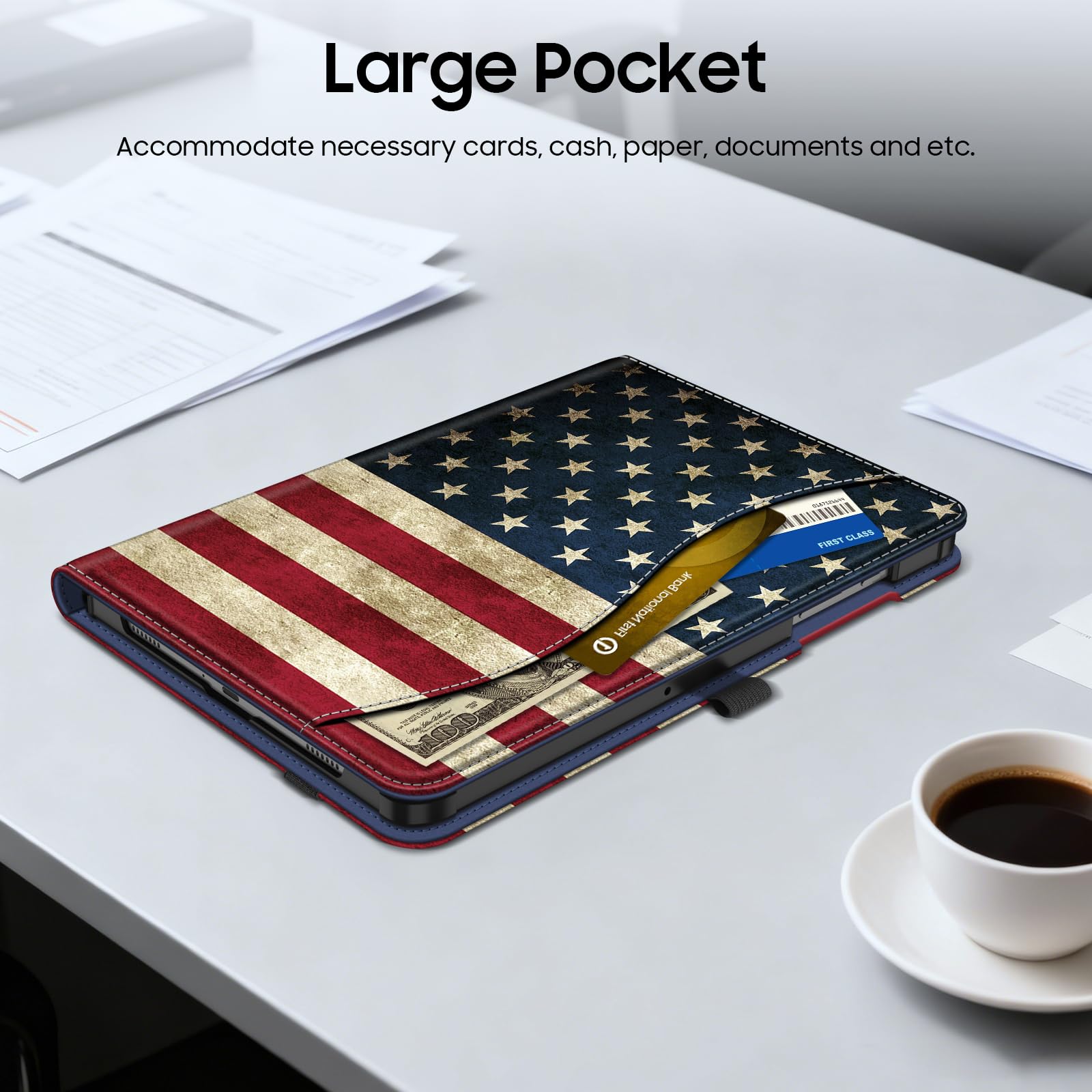 Front Pocket: A front Document Pocket to store your business cards, bank cards, notes, bills or other personal belongs while on the go