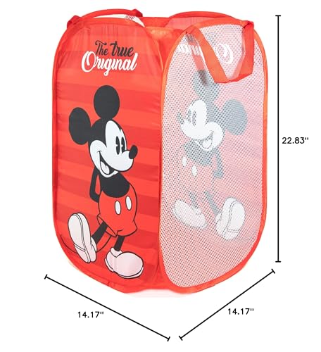 PERFECT FIT & FUN DESIGN - Disney Mickey Mouse pop up hamper measures 14.17 x 14.17 x 22.83 inches. Add a touch of decorative enchantment to your room, bathroom, or laudry room with our fashionable and fun pop up hamper. Fun and colorful design features your child’s favorite classic character, Mickey Mouse.