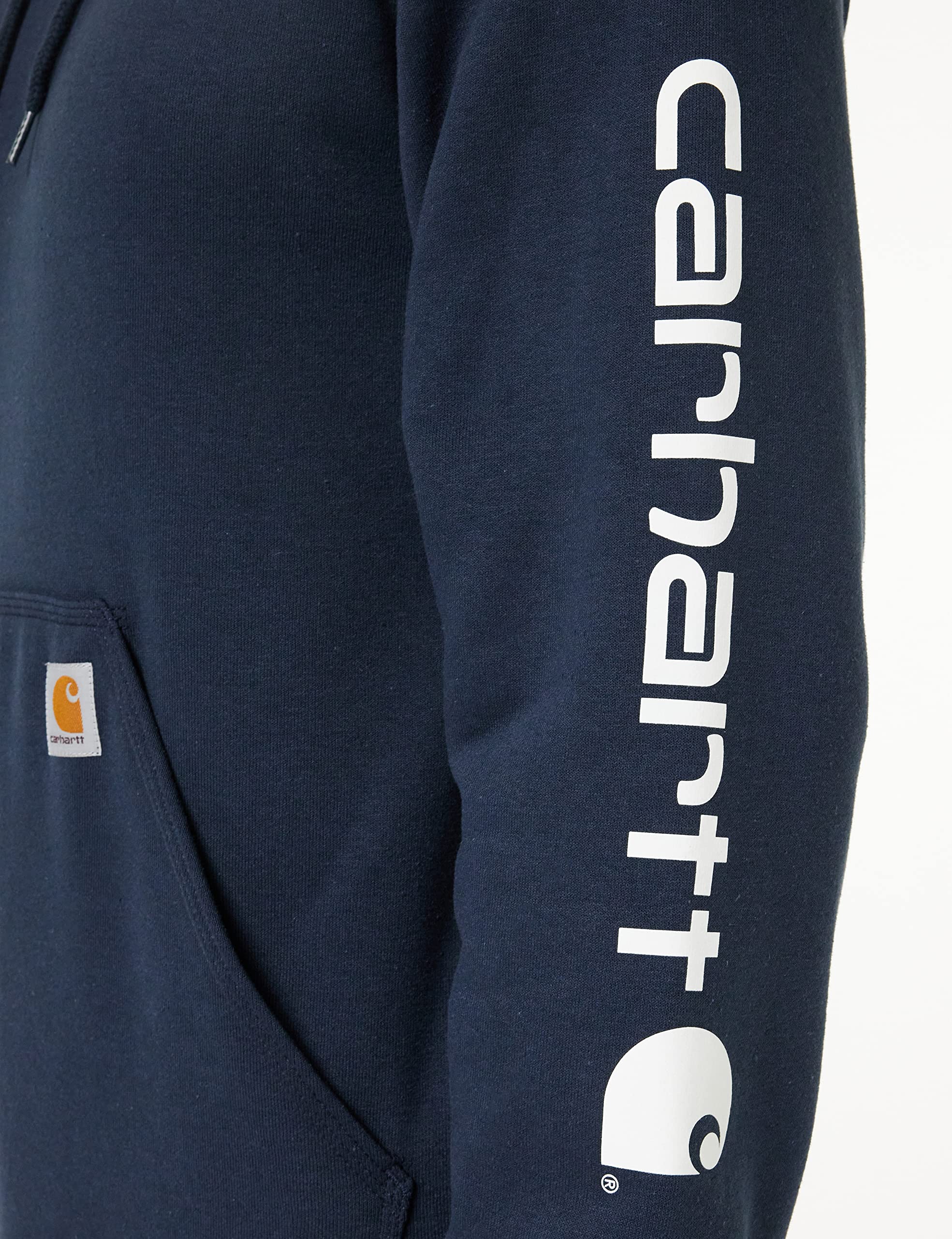 Description Product Description Carhartt's midweight hooded logo-sleeve sweatshirt comes in great colors. Made of a 10.5-ounce, 50% cotton/50% polyester blend, it features an attached hood with draw-cord closure, front hand-warmer pocket, spandex-reinforced rib-knit cuffs and waistband. The carhartt logo is printed on the sleeve and a logo patch is sewn on the pocket. Product Care:Machine wash cold with like colors, Do not bleach, Tumble dry low remove promptly, Do not iron ornamentation From the Manufacturer Our midweight hooded logo-sleeve sweatshirt comes in great colors. Made of a 10.5-ounce, 50% cotton/50% polyester blend, it features an attached hood with draw-cord closure, front hand-warmer pocket, spandex-reinforced rib-knit cuffs and waistband. The Carhartt logo is printed on the sleeve and a logo patch is sewn on the pocket.