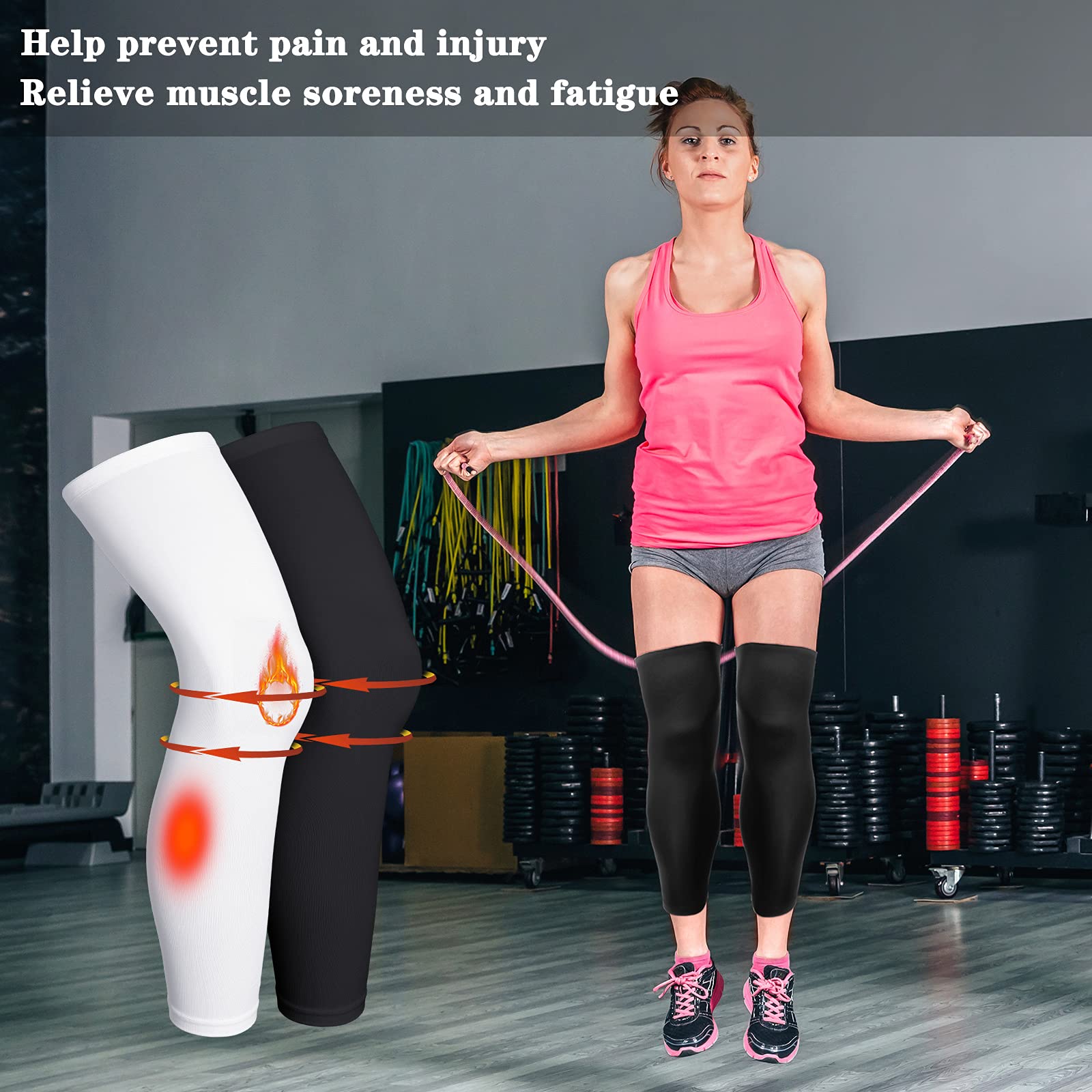 Practical 2 pair of outdoor sport sleeve: compression full leg sleeves are designed to help you get the support you need to be comfortable day and night, helping you prevent pain such as leg pain, tibial splints, leg pinching, muscle soreness, fatigue, swelling, varicose veins and spider veins, etc, Note: please check the size list carefully before buying; The leg sleeve material is elastic; If you want more compress, you can buy a smaller size