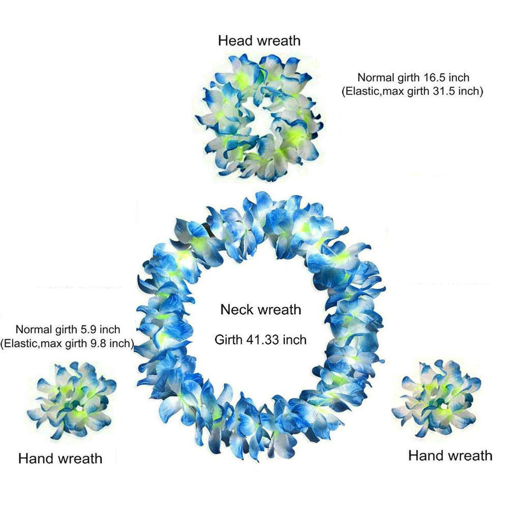 This tropical dancer set includes skirt, pair of flower bracelets, flower headband and flower necklace.