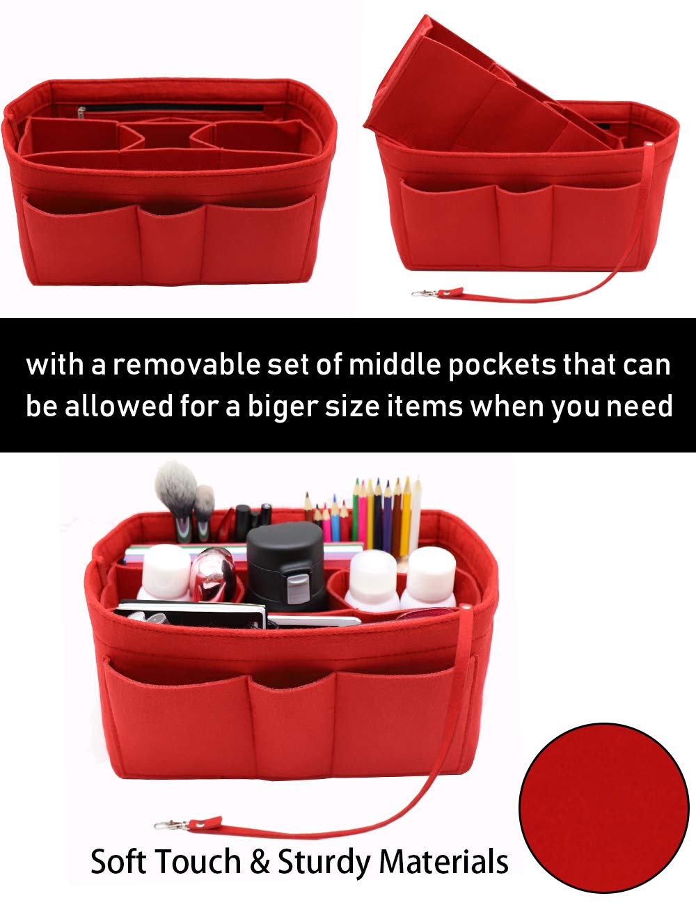LIGHTWEIGHT & DURABLE---Strudy but Very Lightweight,Structured organizer bag in bag, Thick felt fabric better protect your items inside handbag.Fits for a variety of models handbags,Keep your Handbag shape and shipshape.