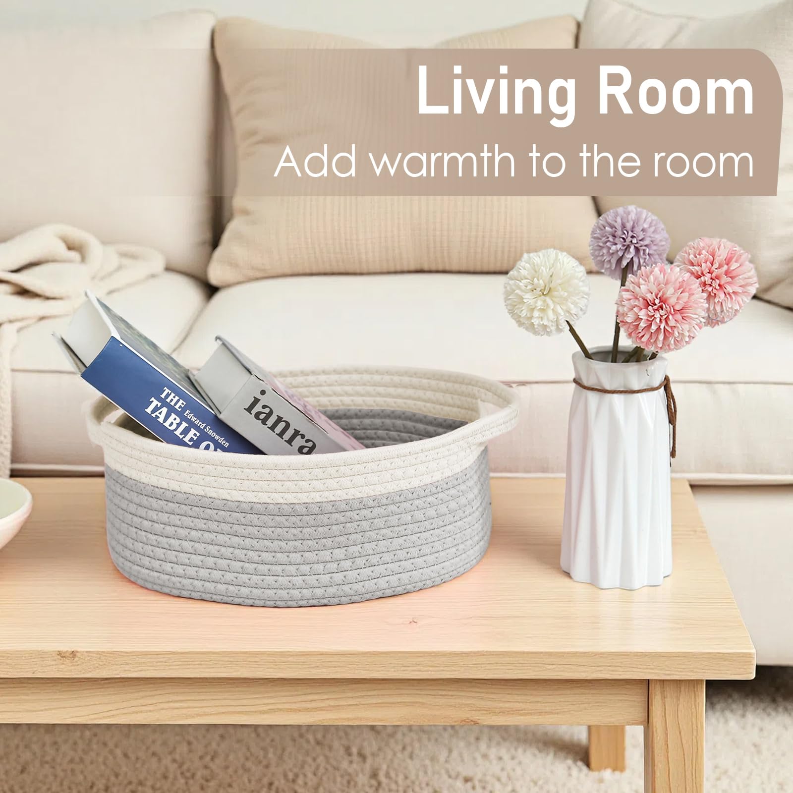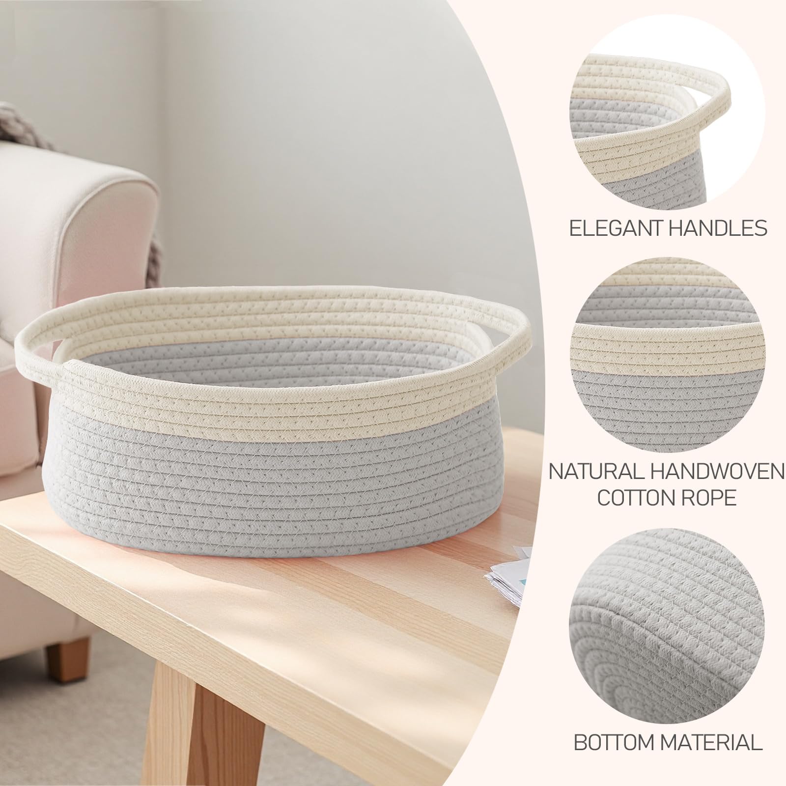 Handmade Woven Basket---Made from natural materials, this woven baskets for storage option is safe for kids and pets. Crafted by skilled artisans, each cotton rope basket is unique in texture and quality.