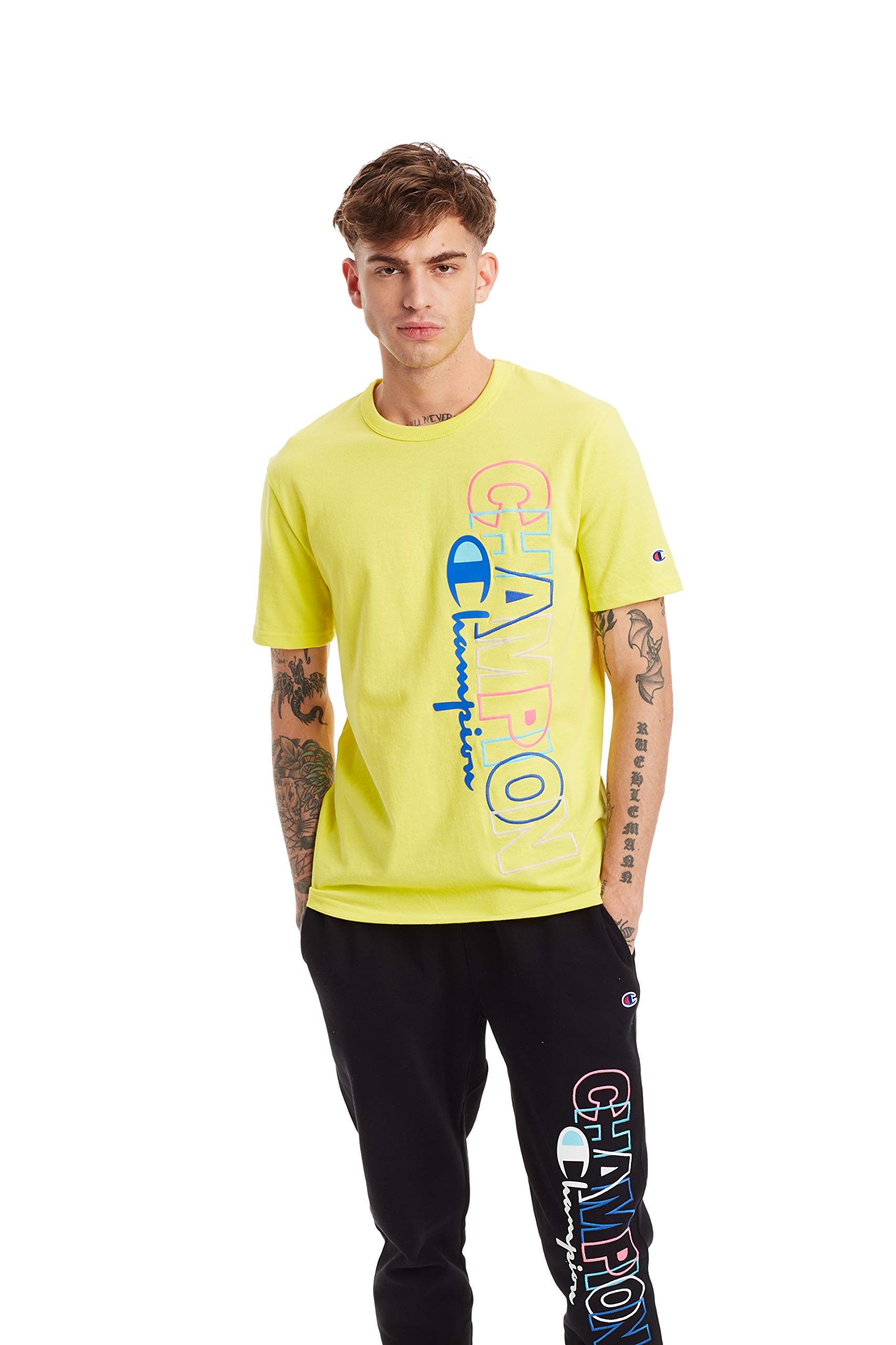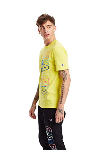 Description JUST THE TEE. Embrace the rich heritage and quality of this heavyweight t-shirt for men – crafted from a comfortable cotton blend, this style is soft on the skin and perfect for your daily rotation. With a classic men's t-shirt silhouette, this design offers a standard fit, a bound neck collar, and iconic branding at the sleeve for a recognizable, sporty look. Made to be a longtime favorite, complete with reinforced stitching and pairs best with your favorite Champion sweats or shorts for an iconic look head to toe.