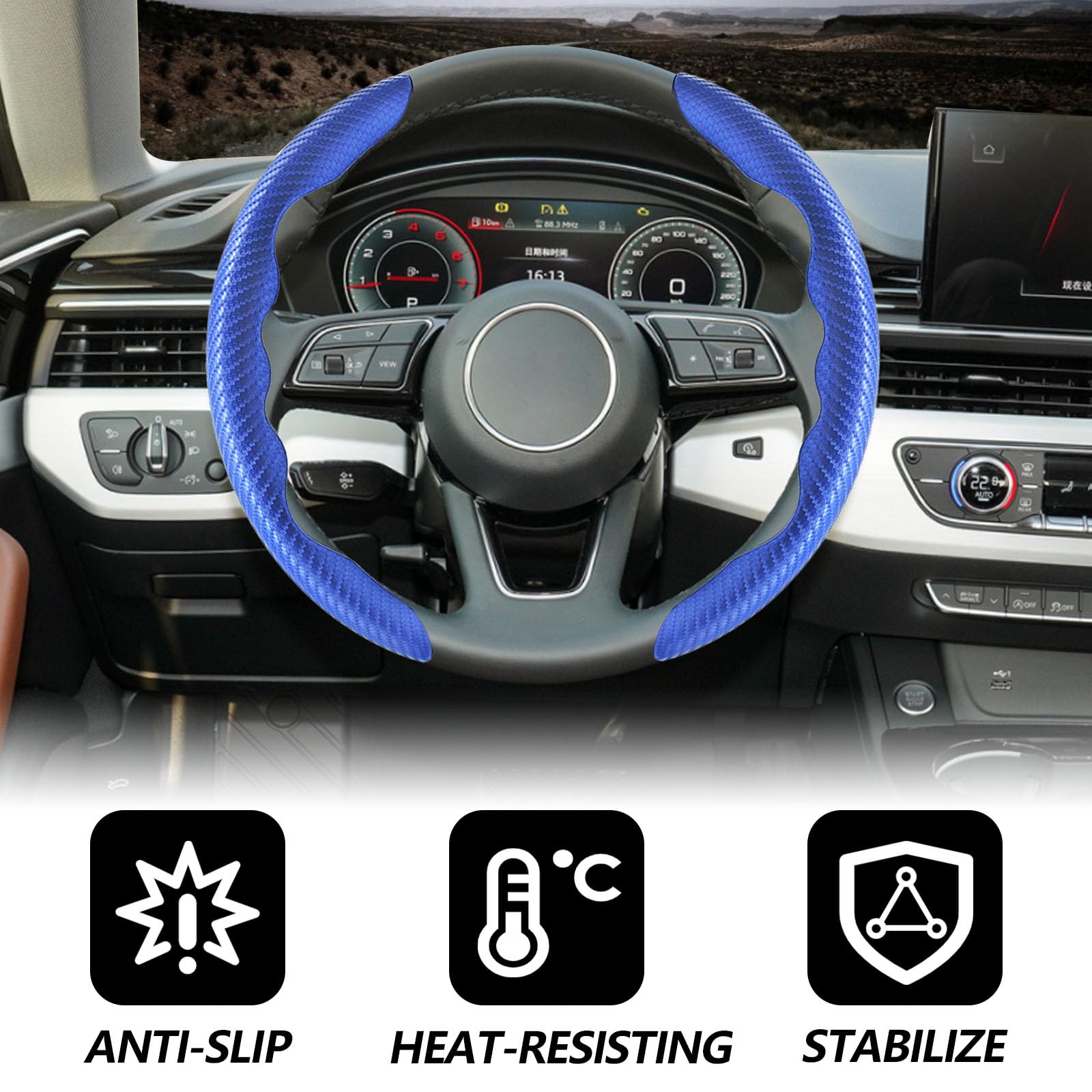 High Quality: Standing out for its durability and easy maintenance, carbon fiber material, the leather Steering Wheel Cover is light and breathable, wear-resistant and is not easily deformed.