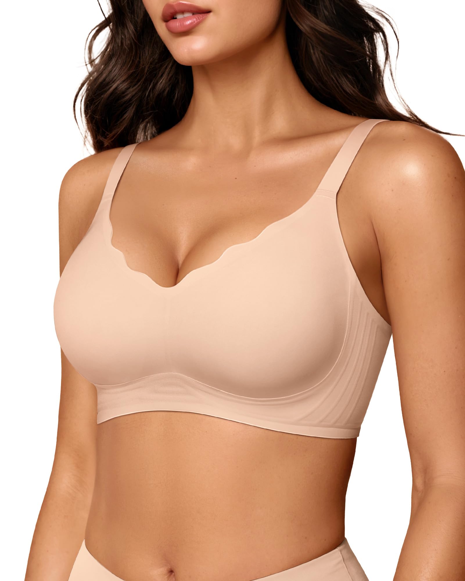 Seamless Bras for Everyday Wear - These seamless bras ensure invisibility under clothing, giving you the freedom to mix and match with different styles. They can serve as everyday bras, sleepwear, lounge bras, minimizer bras, and are flattering to pair with t-shirts, blouses, suits, cardigans, or sweaters. A sports bra ideal for light activities like yoga, dance, or walking.