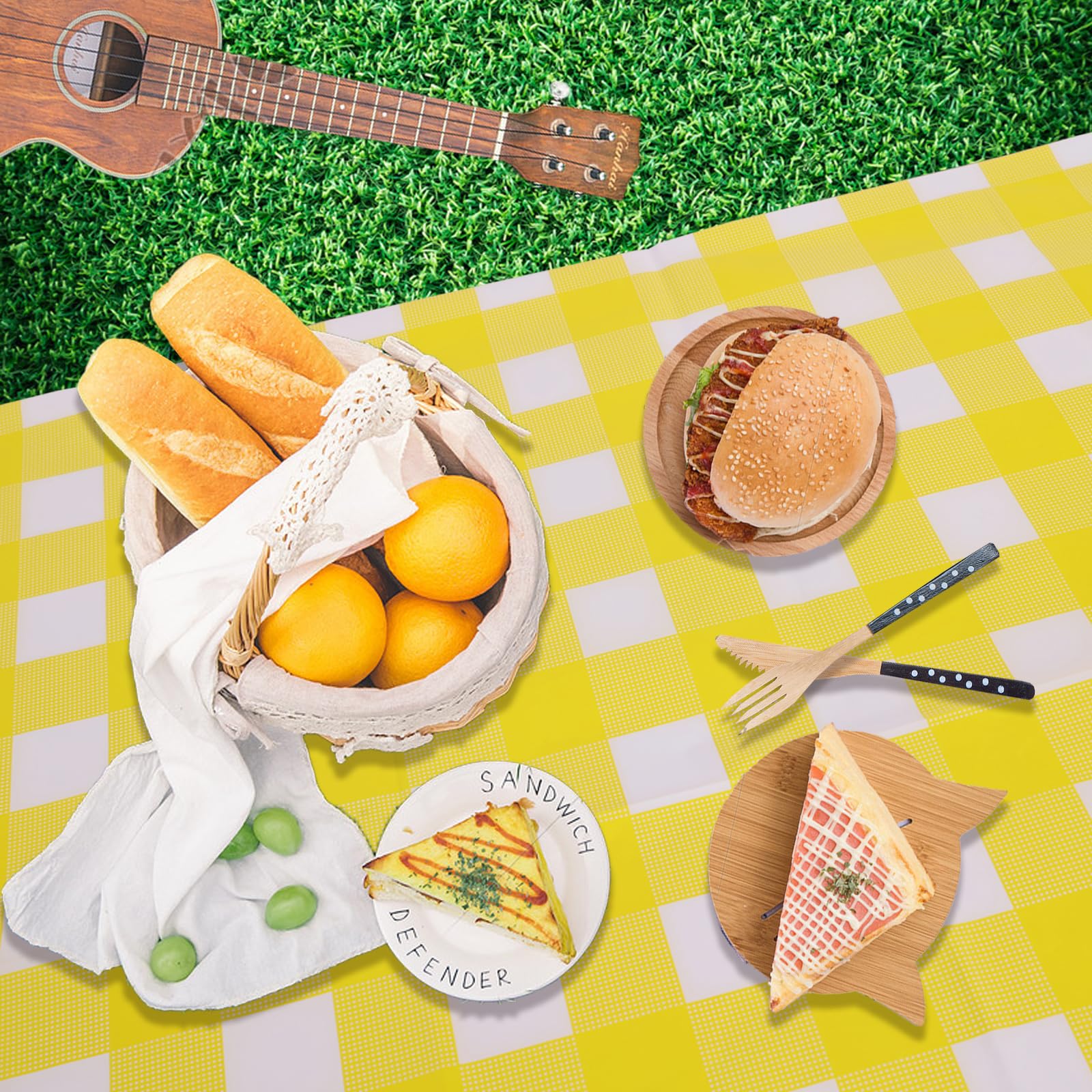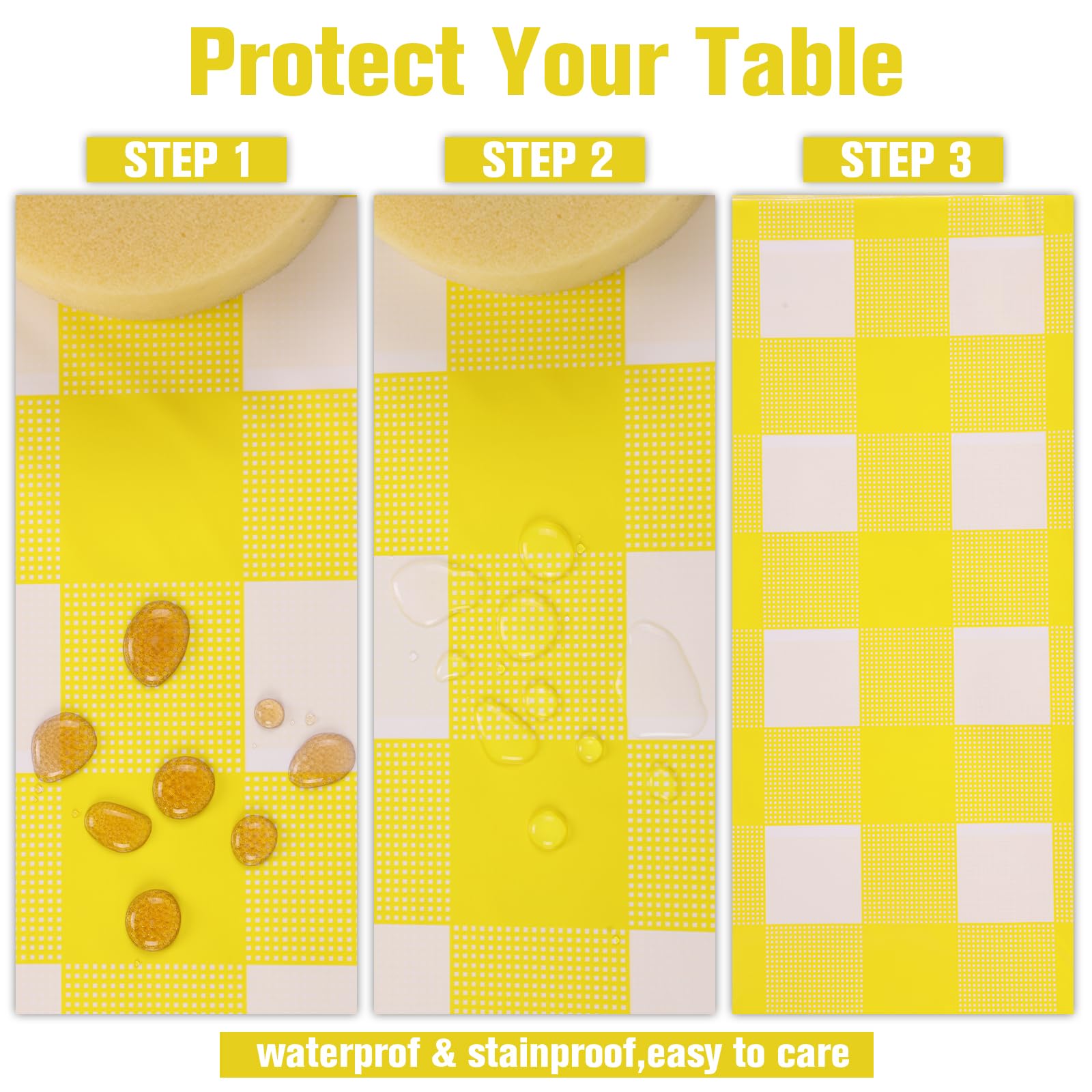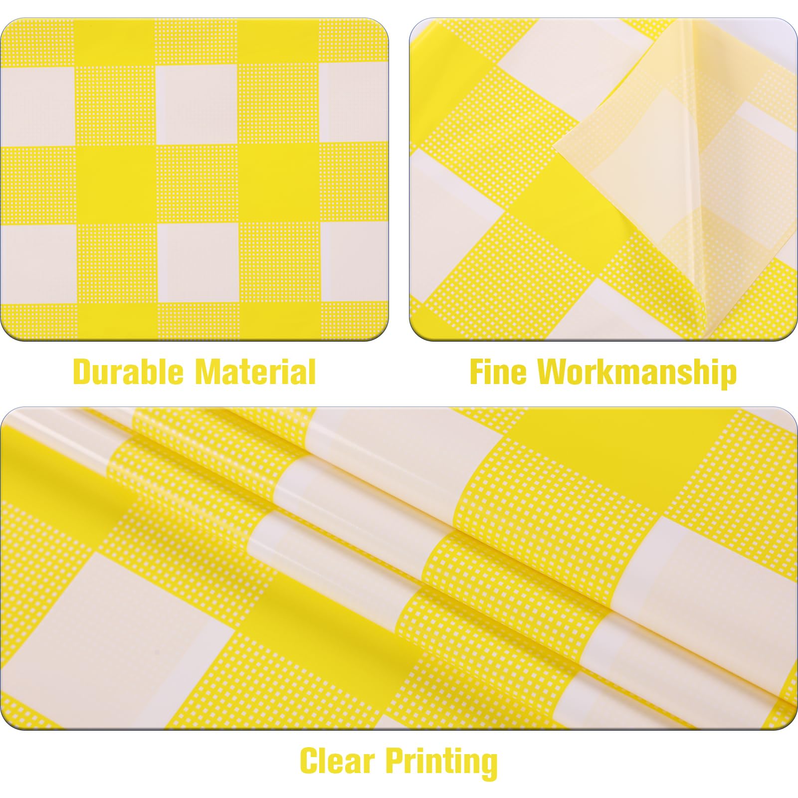 Reliable material: These plastic yellow tablecloths are made of high quality PE plastic material with a seamless transition between adjacent checkered patterns, waterproof and reliable, durablenot, easy to tear and fade, also stain-resistant and spill-proof