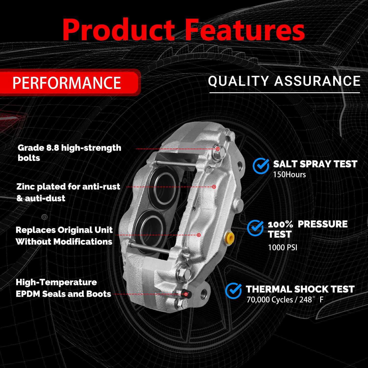 [Perfect Fit]: Each brake caliper is 100% tailored to the original parts of different vehicle models to ensure a perfect match, and has passed internal liquid fatigue testing, burst testing and salt spray testing before entering the market, all complying with international standards; you can easily and quickly replace or upgrade it, significantly enhancing your vehicle's performance and driving experience while ensuring every user gets a high-quality product.