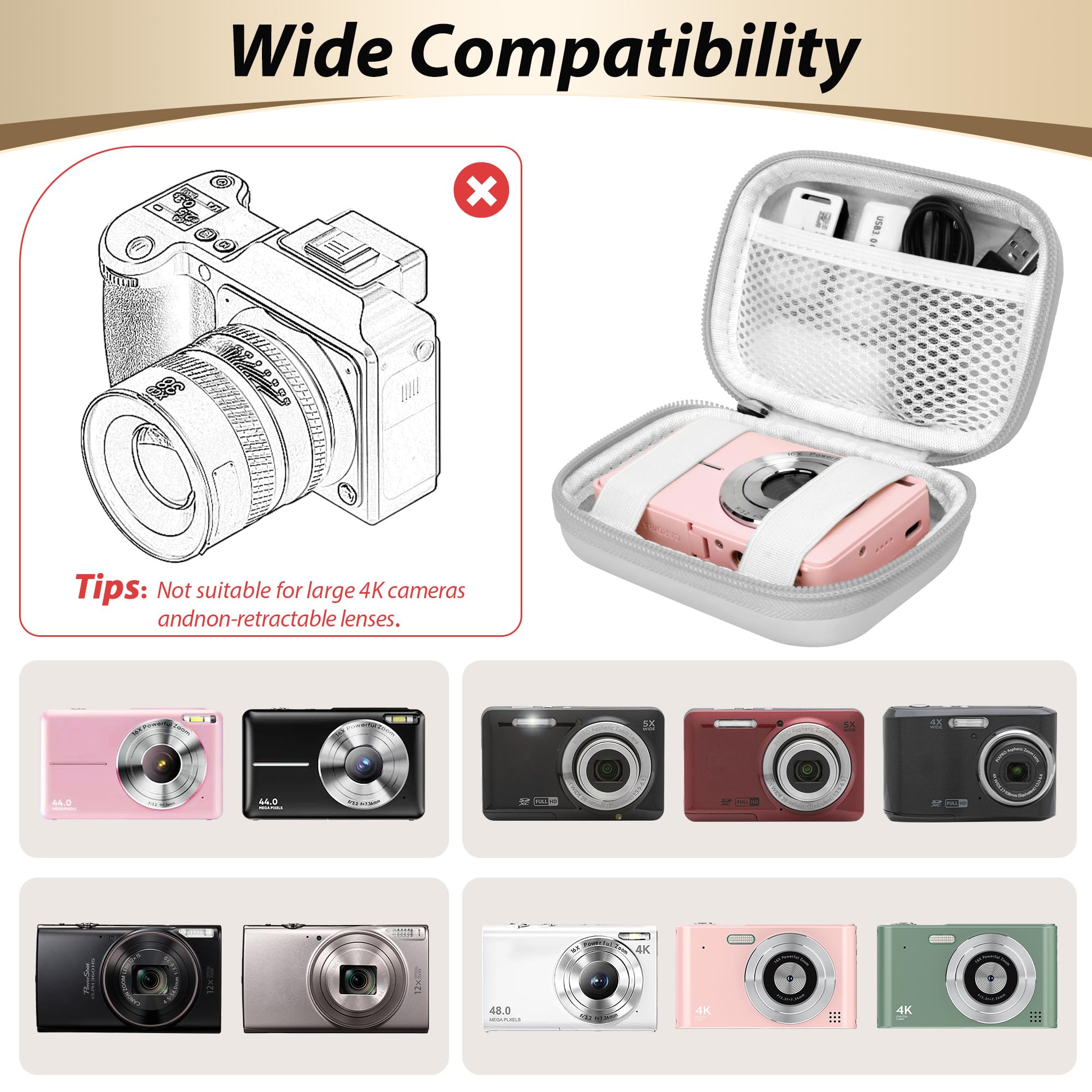 Excellent Protection: The digital camera case features a rugged EVA shell for waterproof, shockproof, and pressure-resistant protection. Its velvet-lined interior prevents scratches, keeping your kodak pixpro fz45 or other compact cameras safe alongside digital camera accessories