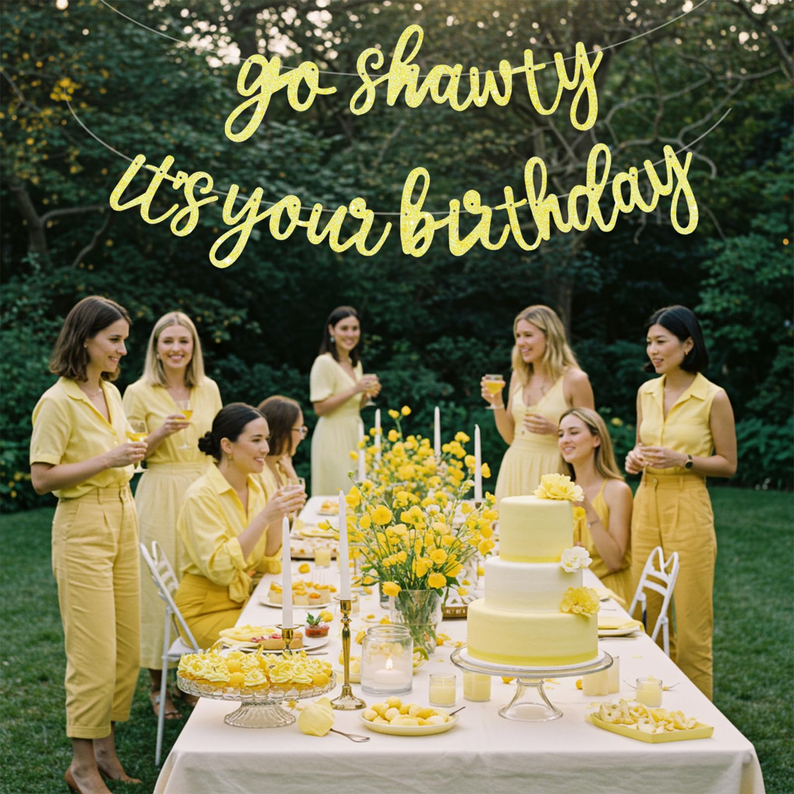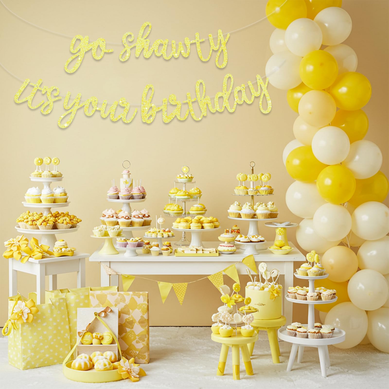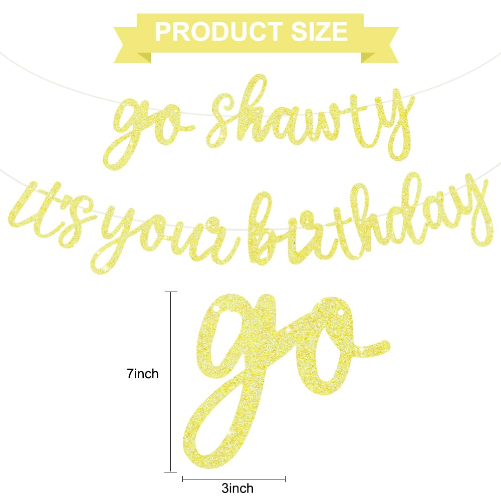 Product includes : A Glitter NO DIY Go Shawty It's Your Birthday Banner is included in our product. It is a very convenient birthday banner that can save your time and decorate your birthday party very well.