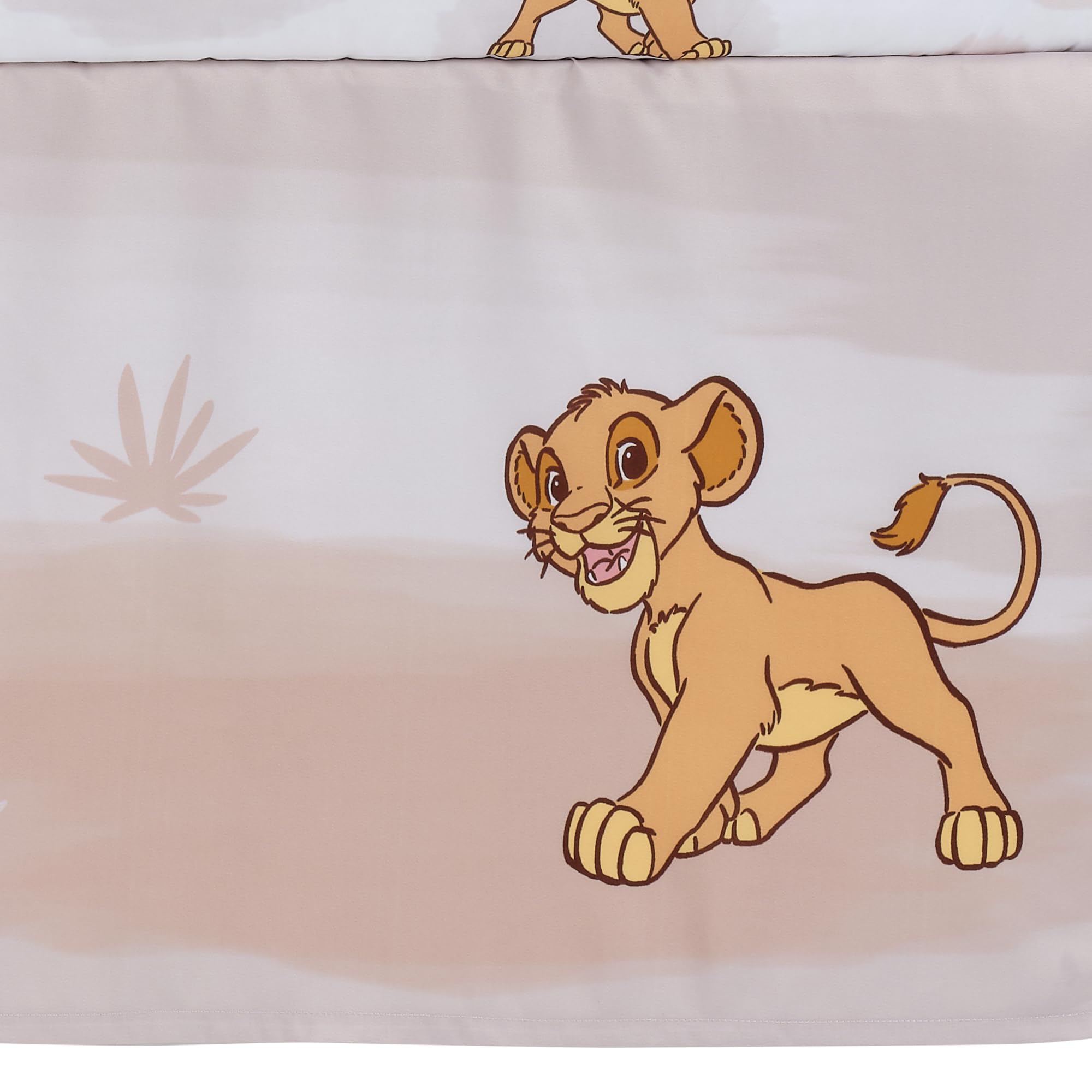 The crib skirt features Simba on the two long sides, and Pumbaa and Timon on the short sides