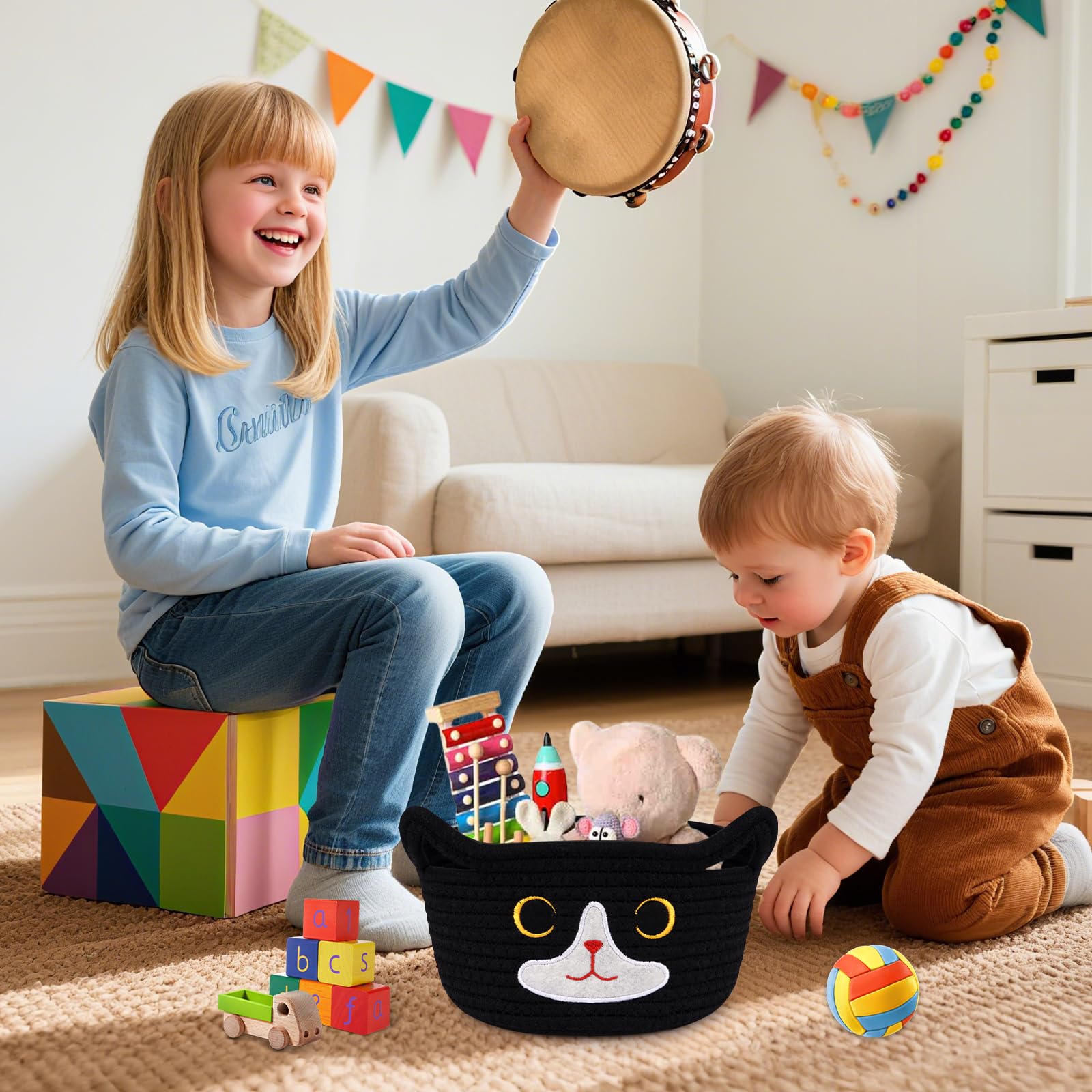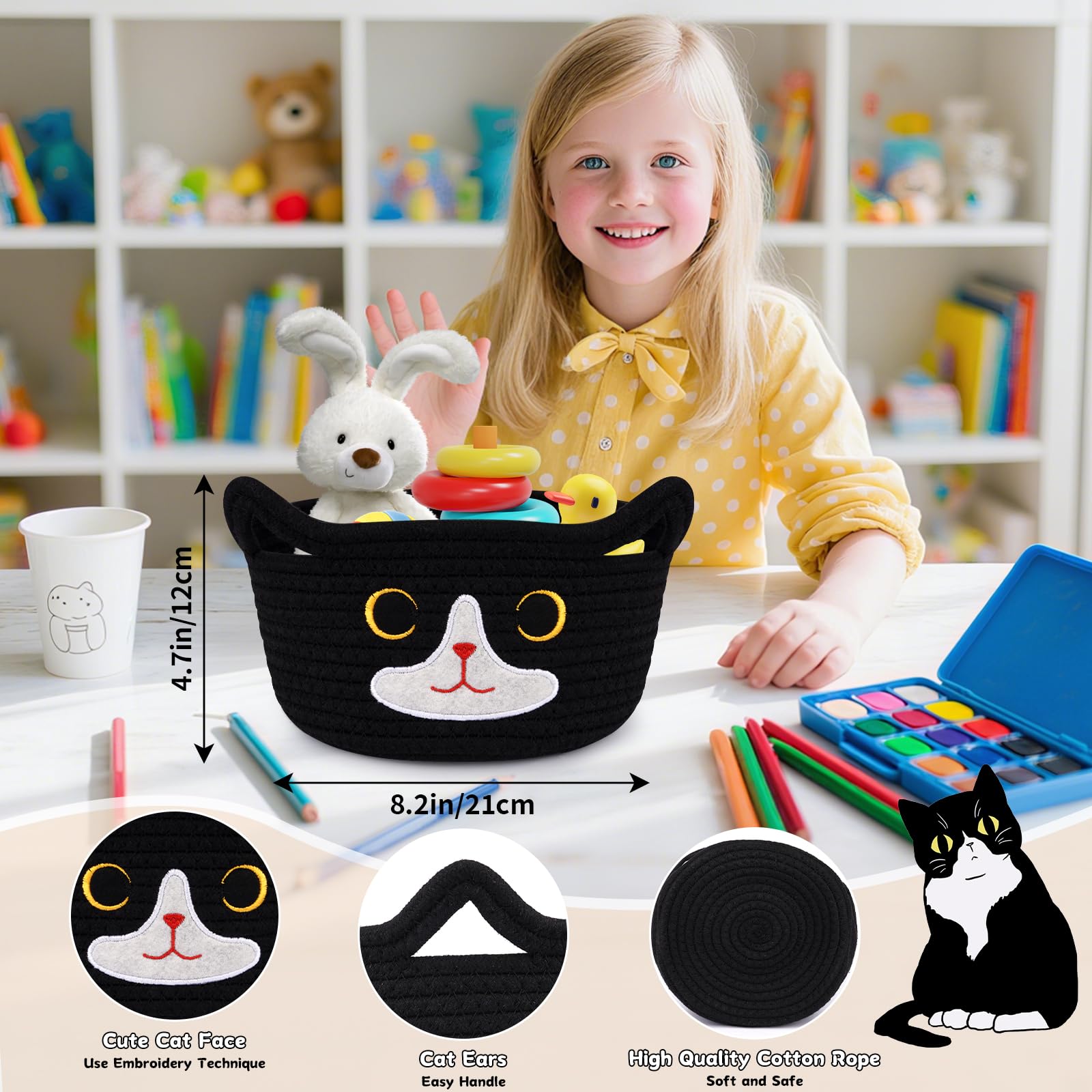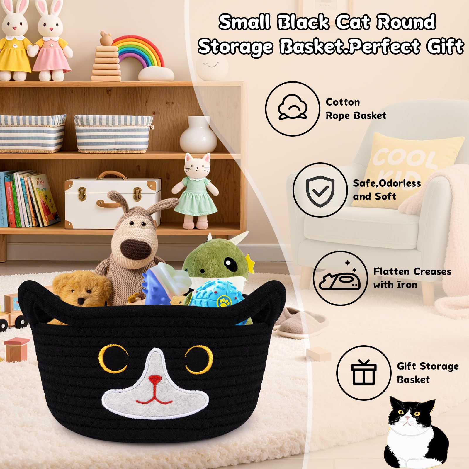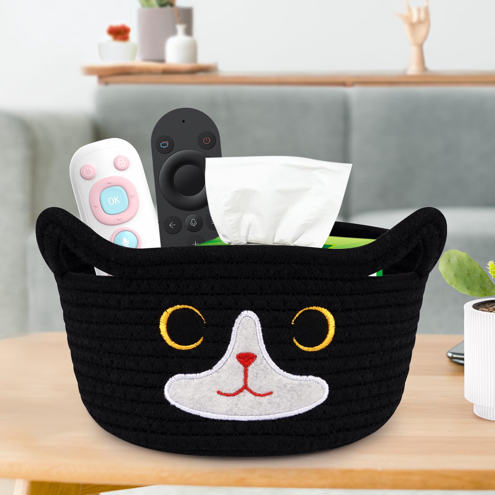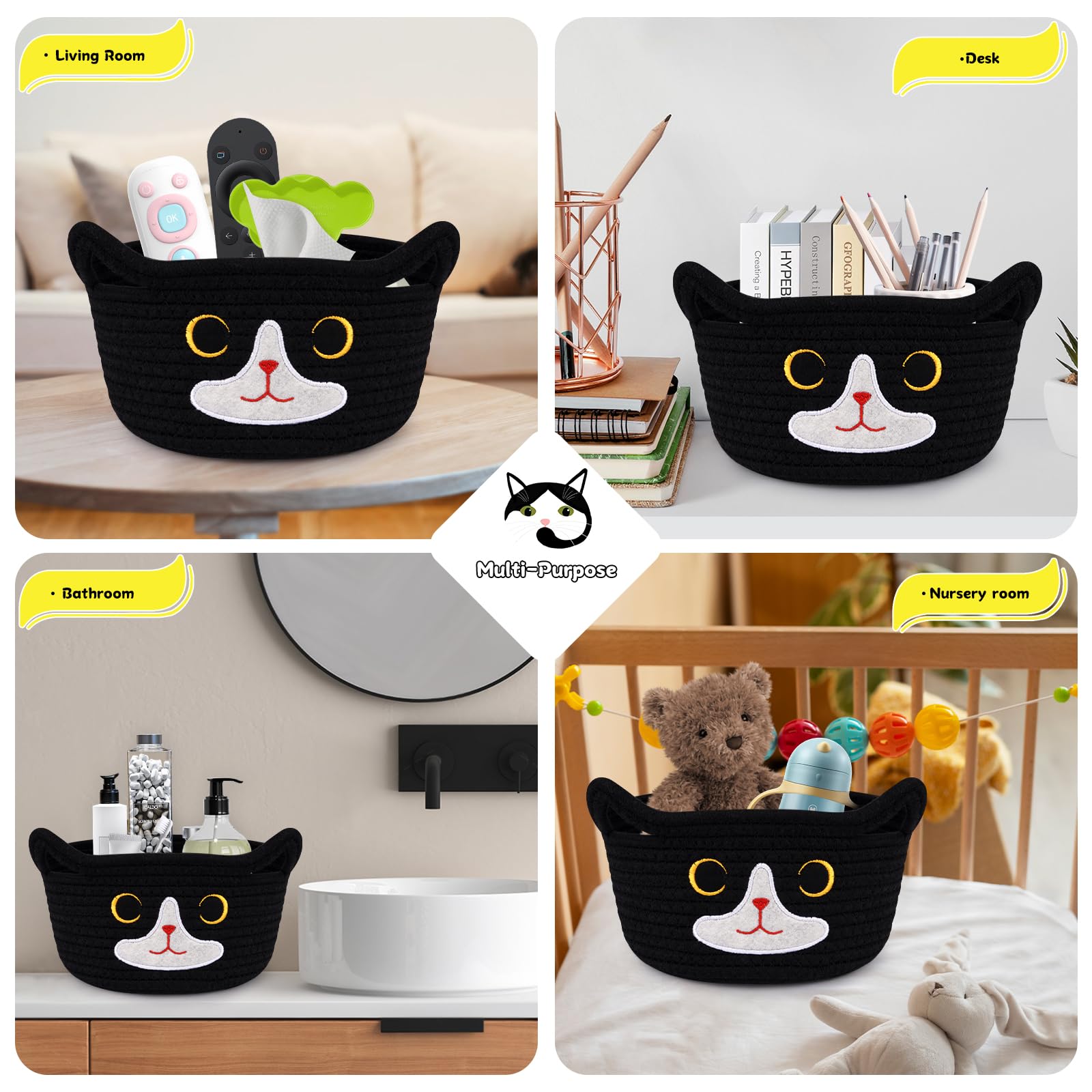 Cute Cat Basket: Perfect as small storage basket, this cute basket features black cat embroidered face. Ideal for storing baby blankets. The surface is soft and skin-friendly and odorless, baskets for gifts is cute also not easy to get dirty.