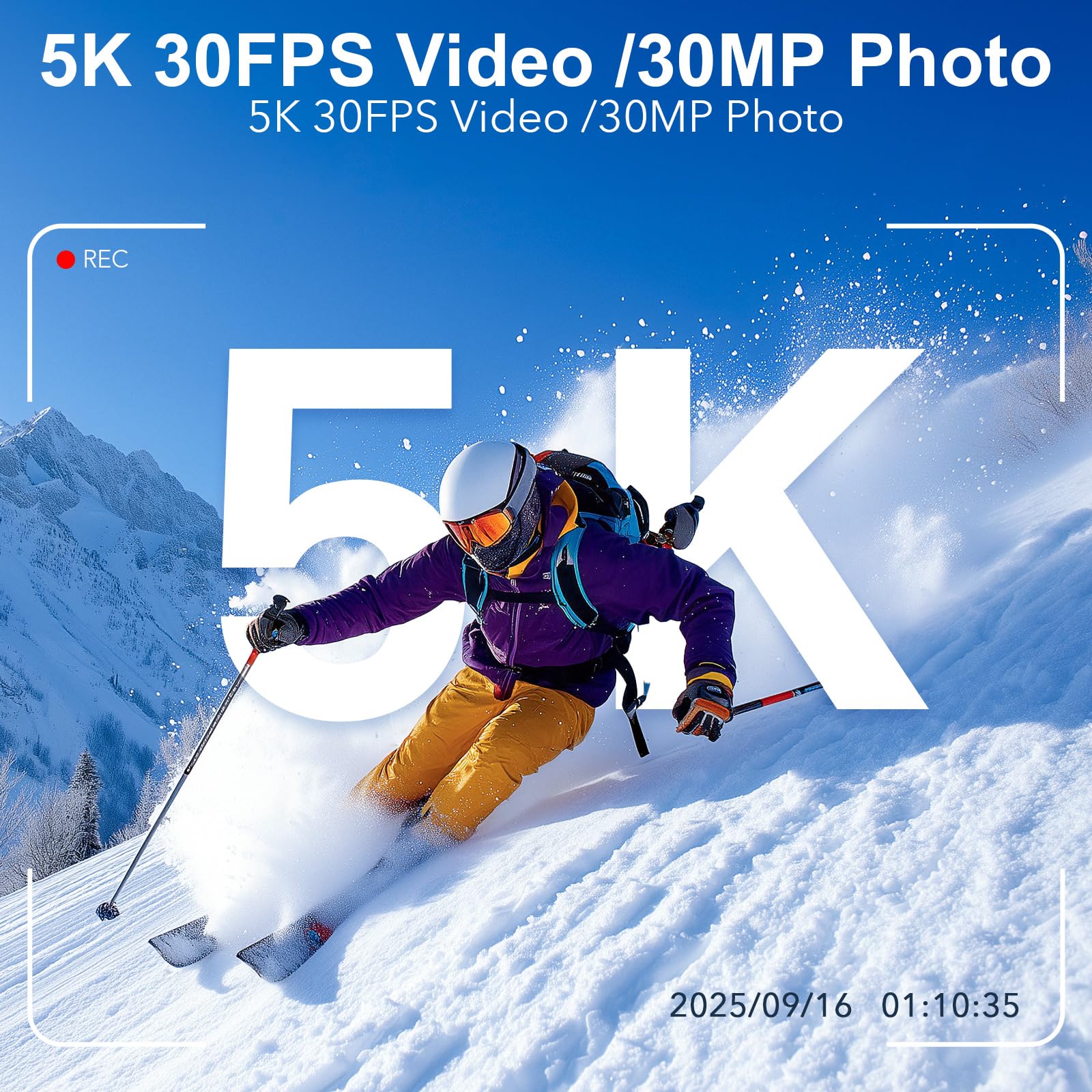Stunning 5K30FPS Video & 30MP Image – Ultra HD Action Camera 4K Experience: Capture crystal-clear visuals with 5K30FPS video and high-resolution 30MP photos, making this a powerful video camera for POV and helmet-mounted video recording. Whether biking, hiking, or traveling, enjoy pro-level footage in extreme clarity.