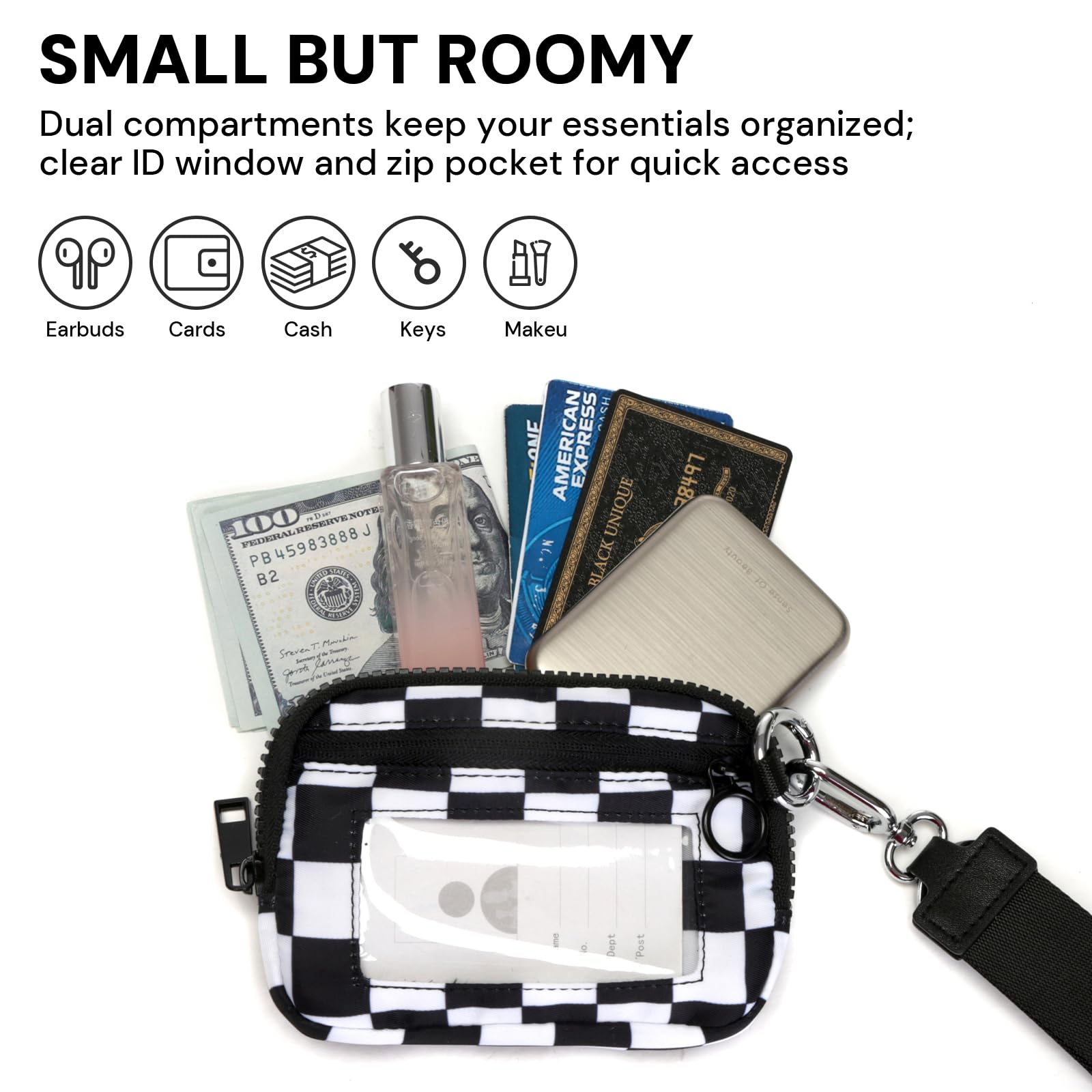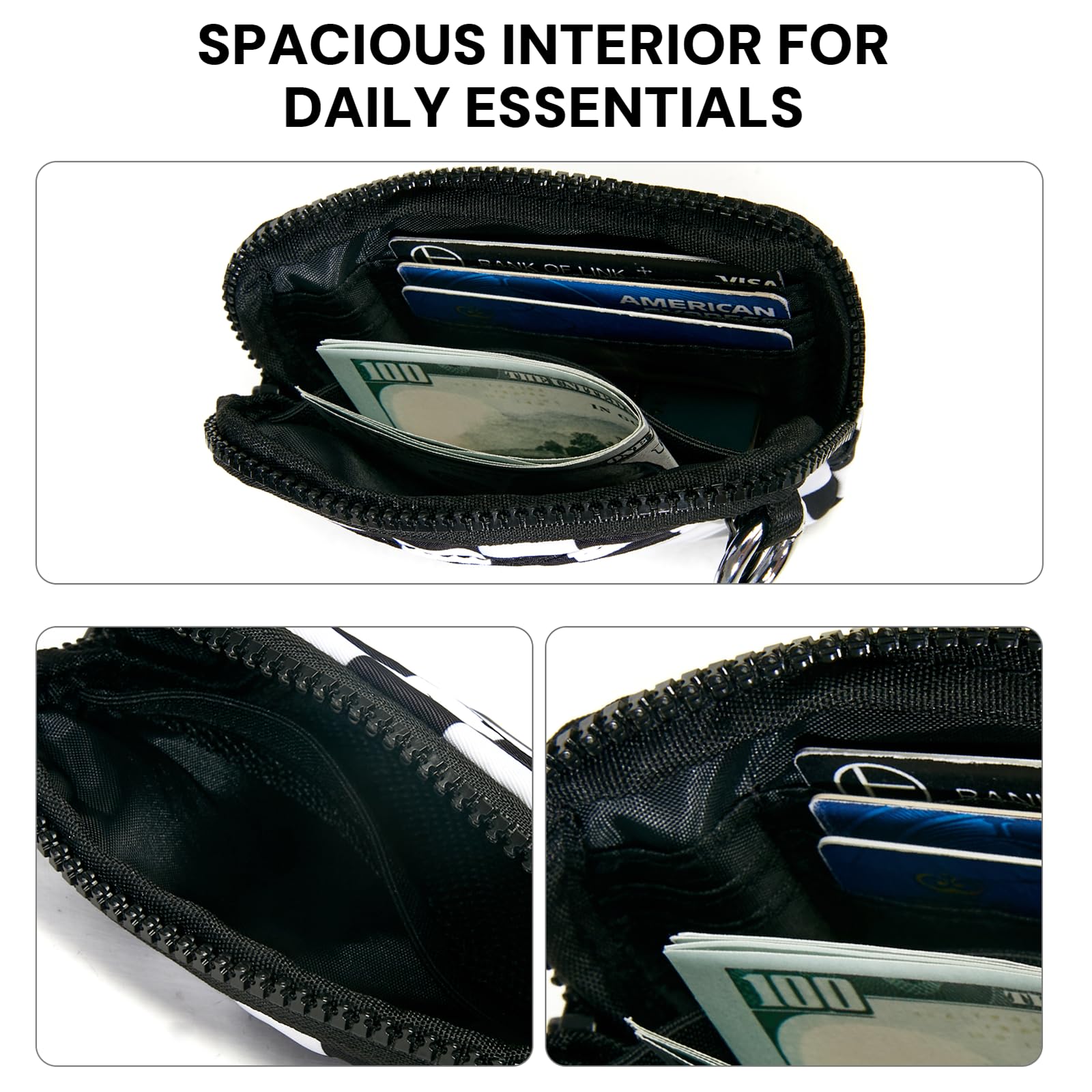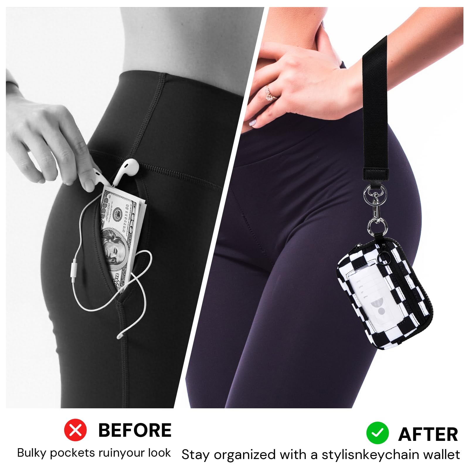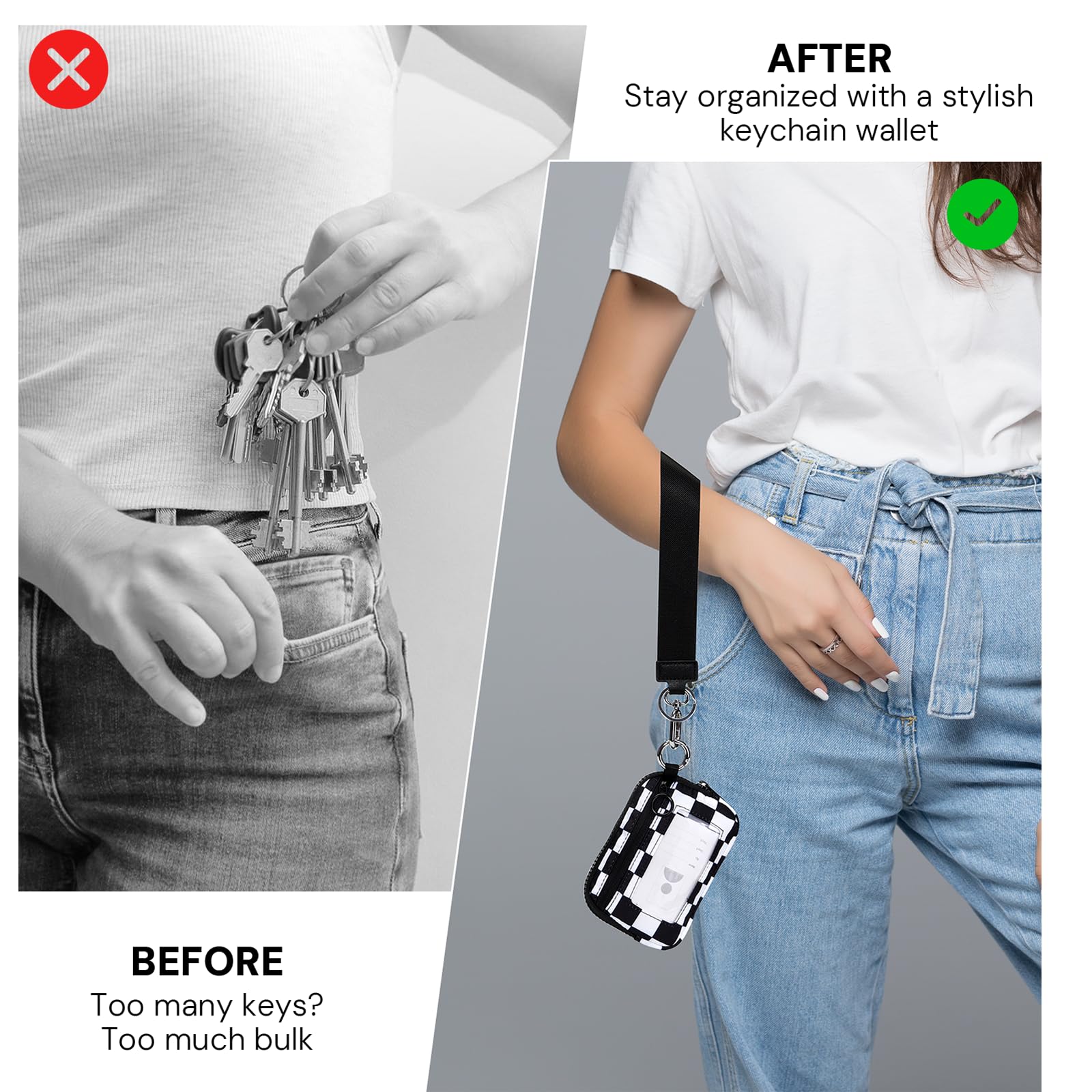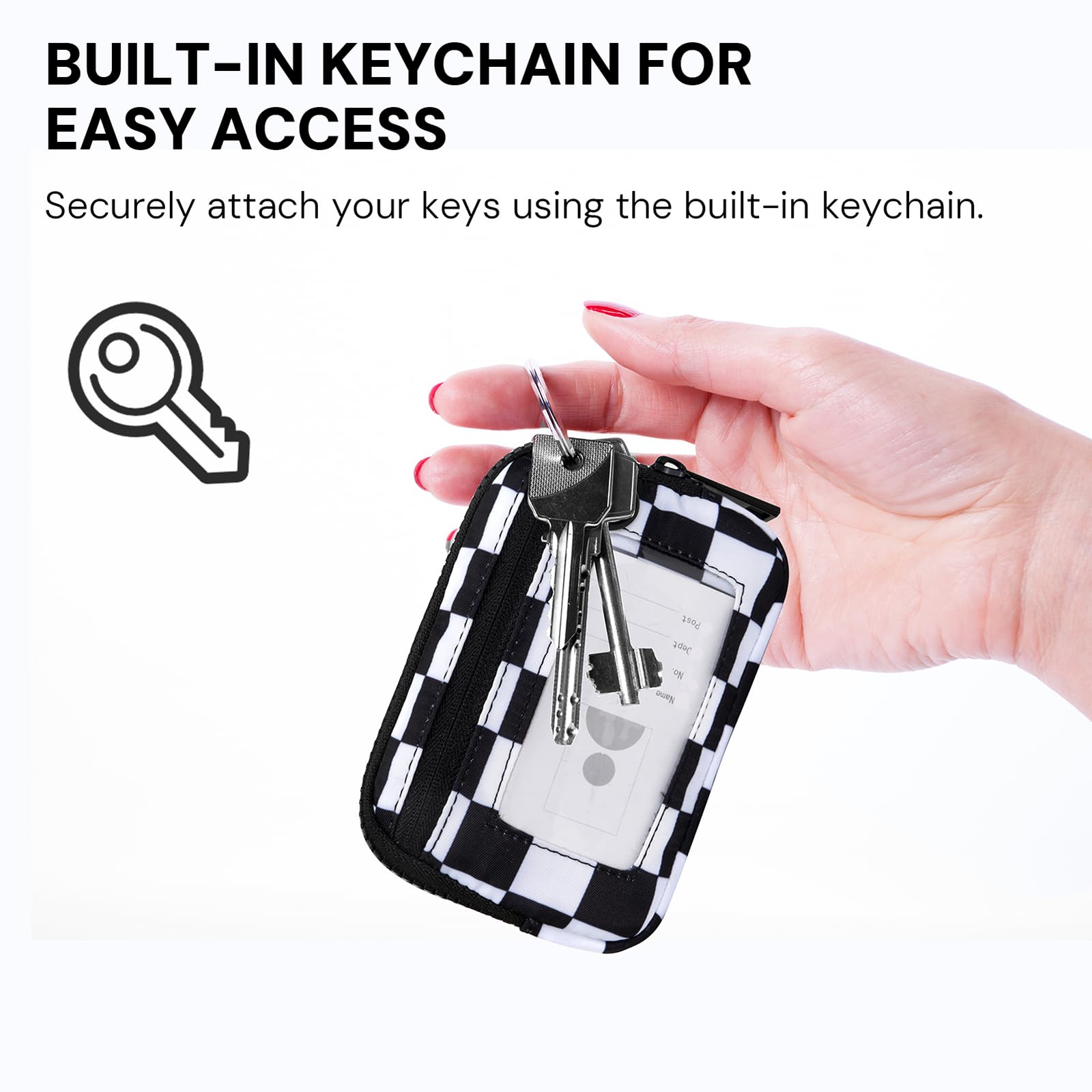 Premium Material:This checkerboard keychain wallet is crafted from high-quality nylon that’s soft, water-repellent, and skin-friendly. The zipper runs smoothly, the stitching is neat and secure, and the wristlet keychain fits comfortably in your hand—adding a refined touch to your daily carry