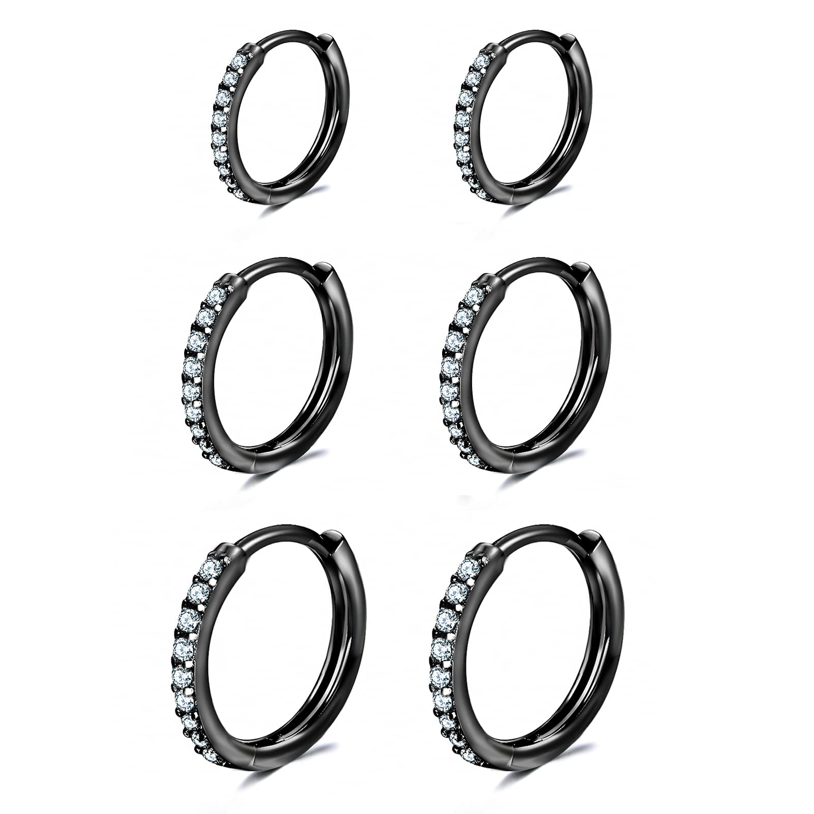 【PACKAGE INCLUDES】Order includes 3 Pairs 6/8/10mm(0.24/0.31/0.4in) Small Cubic Zirconia Hoop Earrings. The Small Hoop Earring is Cuff Design, Easy to Open and Close. Note:The 925 Sterling Silver Needle is very soft,Please do not Use too much Force When Opening and You can Straighten it Yourself if it bent.
