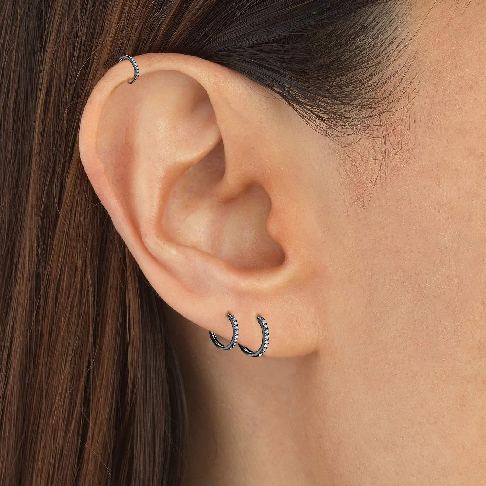 【CLASSICAL&TIMELESS】Simple and Classical Hoop design, Classical and Timeless. You will be more Beautiful and Elegant when You Wearing this CZ Hoop Earrings. This Small hoop earring is Suitable for Women and Men. Can be used as Earrings, Cartilage Earrings, Tragus Ear Piercing Jewelry.